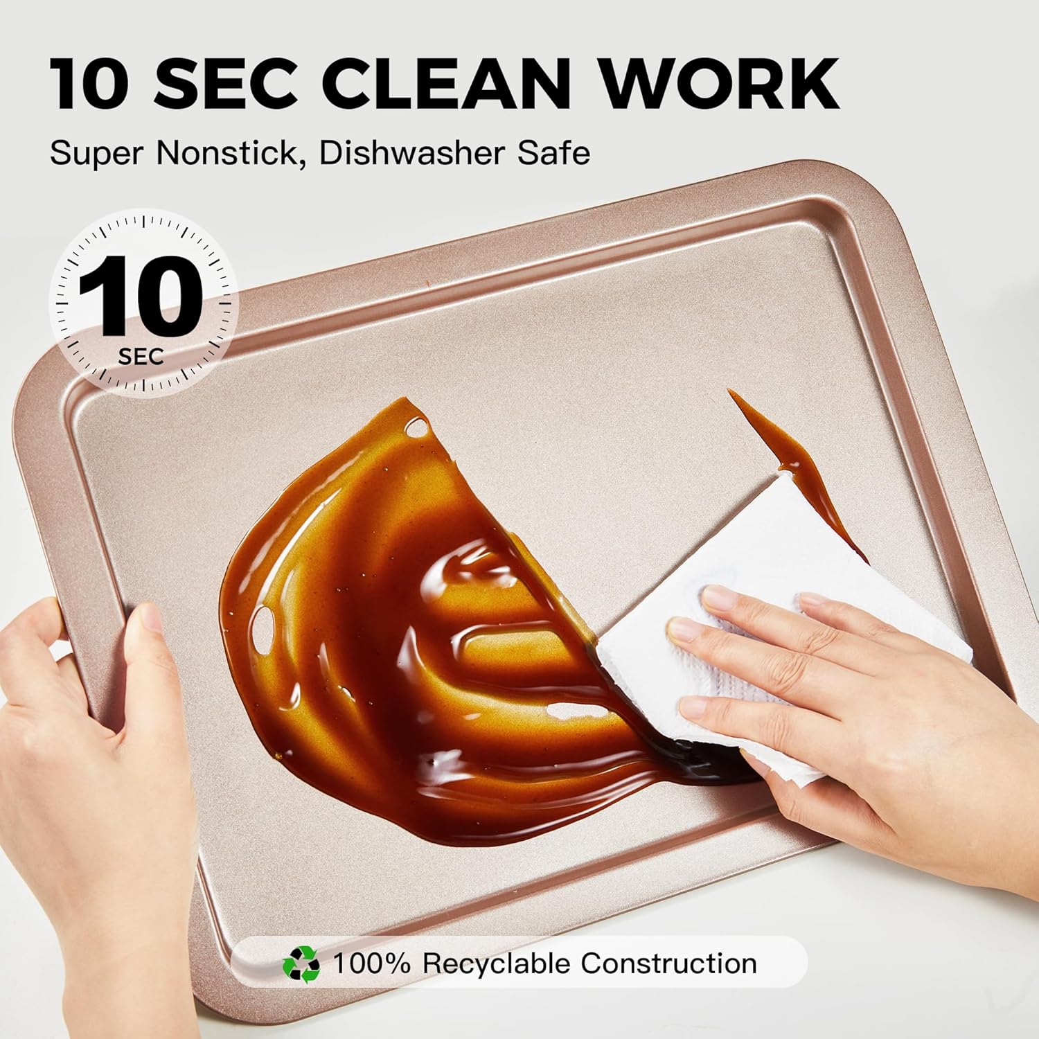 - EXQUISITE CRAFT - The cookie sheets for baking nonstick set is made of carbon steel, which is sturdy and durable. Compared with glass or ceramic sheet pan, it is unbreakable. One-piece seamless design with no dead ends and rounded corners for greater safety, Smooth curved edges prevent finger injuries