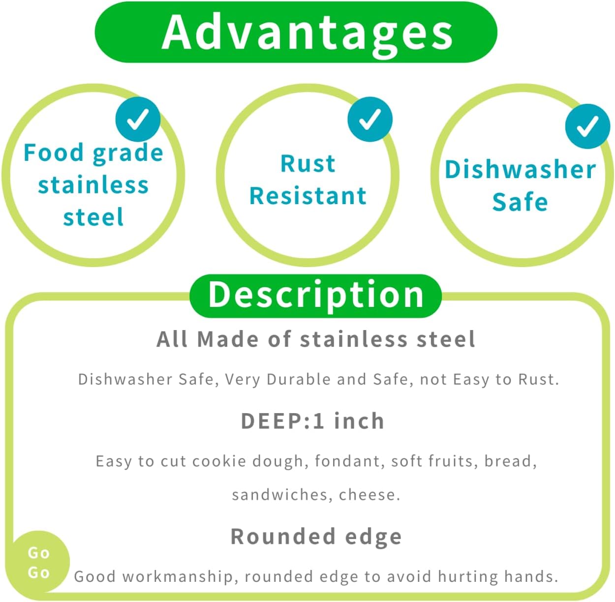- All made of food grade stainless steel, can be used from 40 degrees below zero to 230 degrees, will not rust after washing with water, very durable and safe.