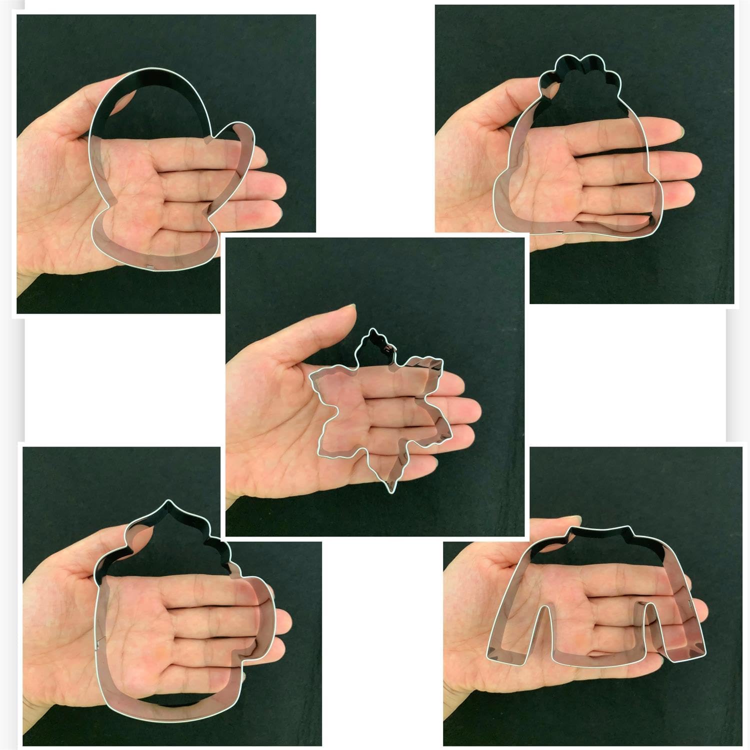 - Package:5 assorted holiday shapes, Sweater, Hat, Mitten, Snowflake, Coffee MugG.Deep 1 inch.Great size for decorating sugar cookies during thanksgiving christmas or any holiday.