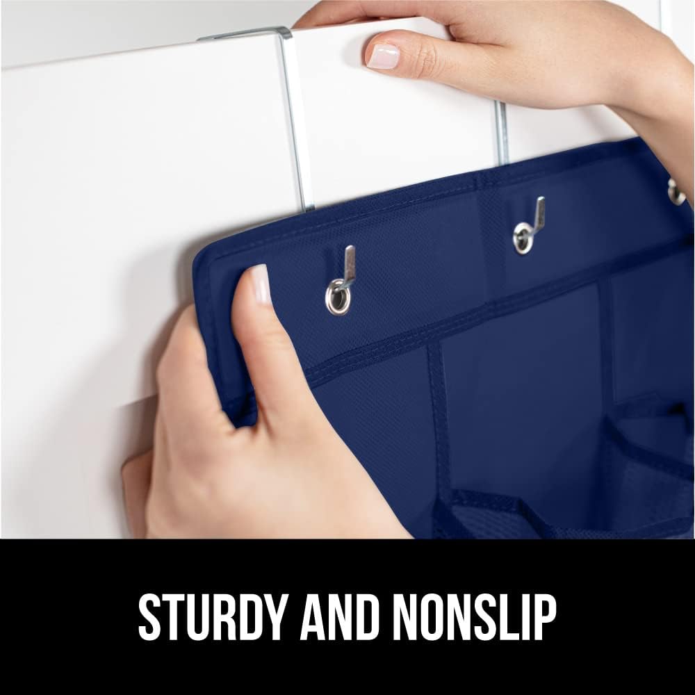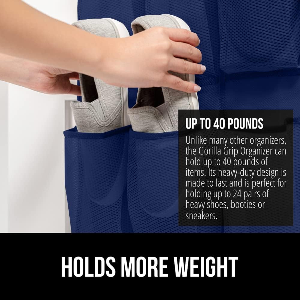 GORILLA GRIP Over the Door Shoe Organizer, 24 Large Breathable Mesh Pockets, Space Saving Hanging Storage Holder, Closet Rack Hanger Holds Up to 40 lbs, Hangs on Closets for Shoes, Accessories, Navy