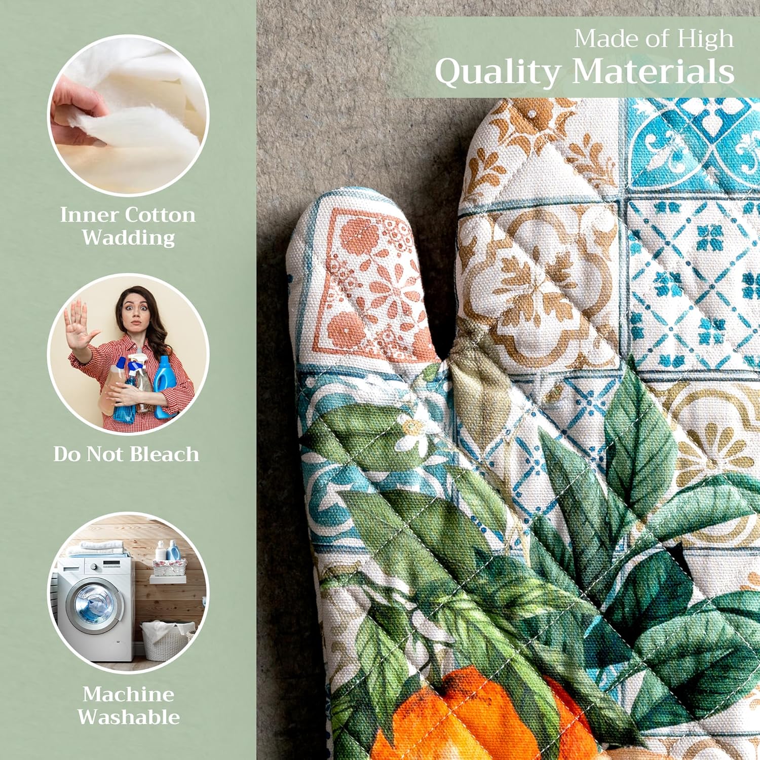 Maison d' Hermine Oven Gloves 100% Cotton Oven Mitt 7" x 13" with Loop Heat Resistant, BBQ, Cooking Gloves, Baking, Grilling, Kitchen, Handling Hot Pans Spring/Summer (Pack of 1, Agrume)