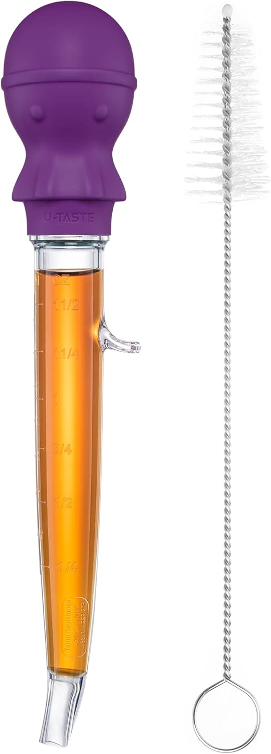 U-Taste 1.5oz Angled Turkey Baster - 228.2ºF Heat Resistant Food Grade Tritan and Silicone Large Octopus Bulb Baster Set with Cleaning Brush for Cooking Basting Meat Poultry Beef Chicken (Purple)