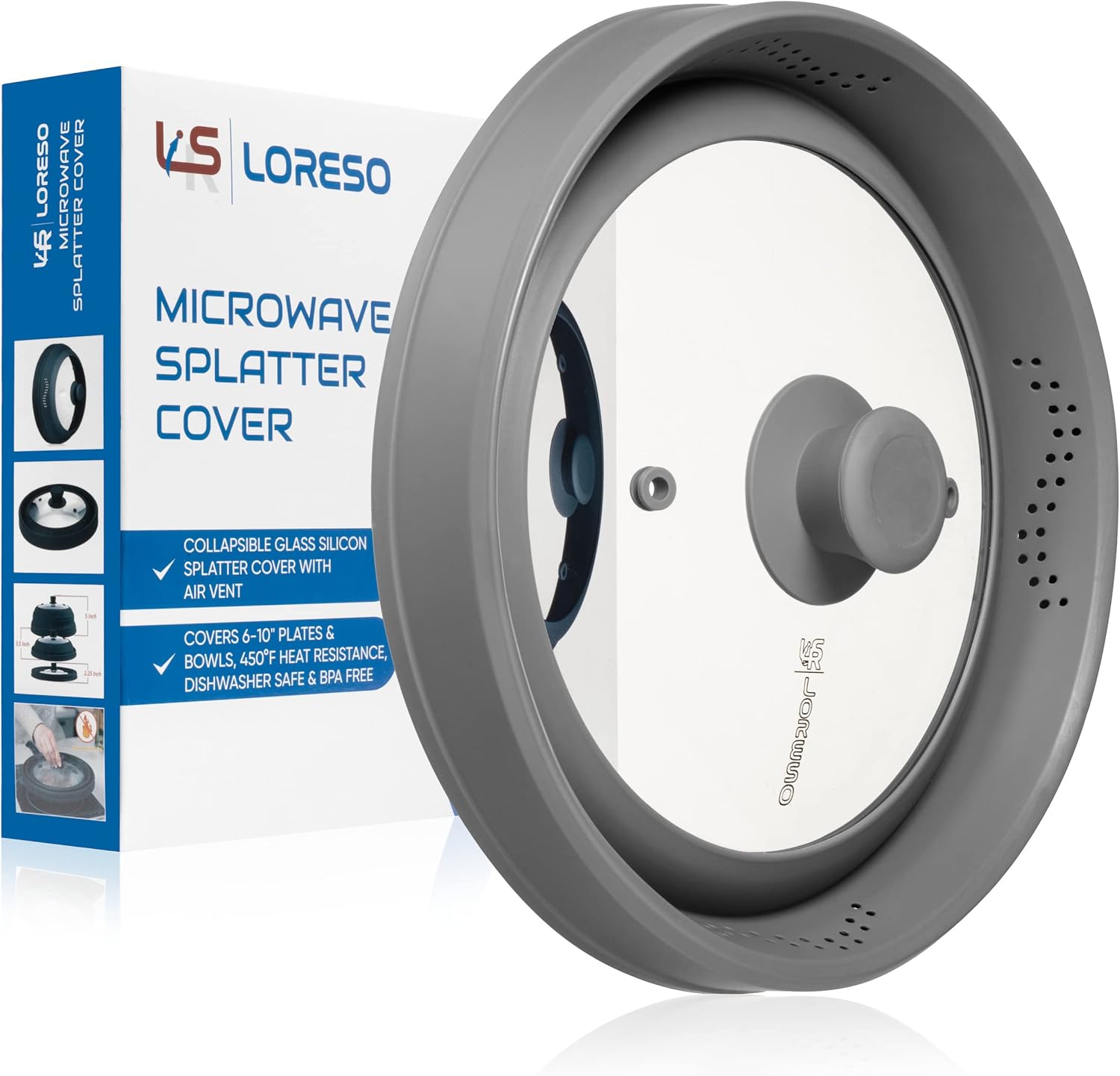 Microwave Splatter Cover for Food - Silicone Glass Dish Plate Cover, Vented with Silicone Grip Handle Knob, Collapsible, Food Grade, Microwave, Dishwasher Safe - 10" Inch