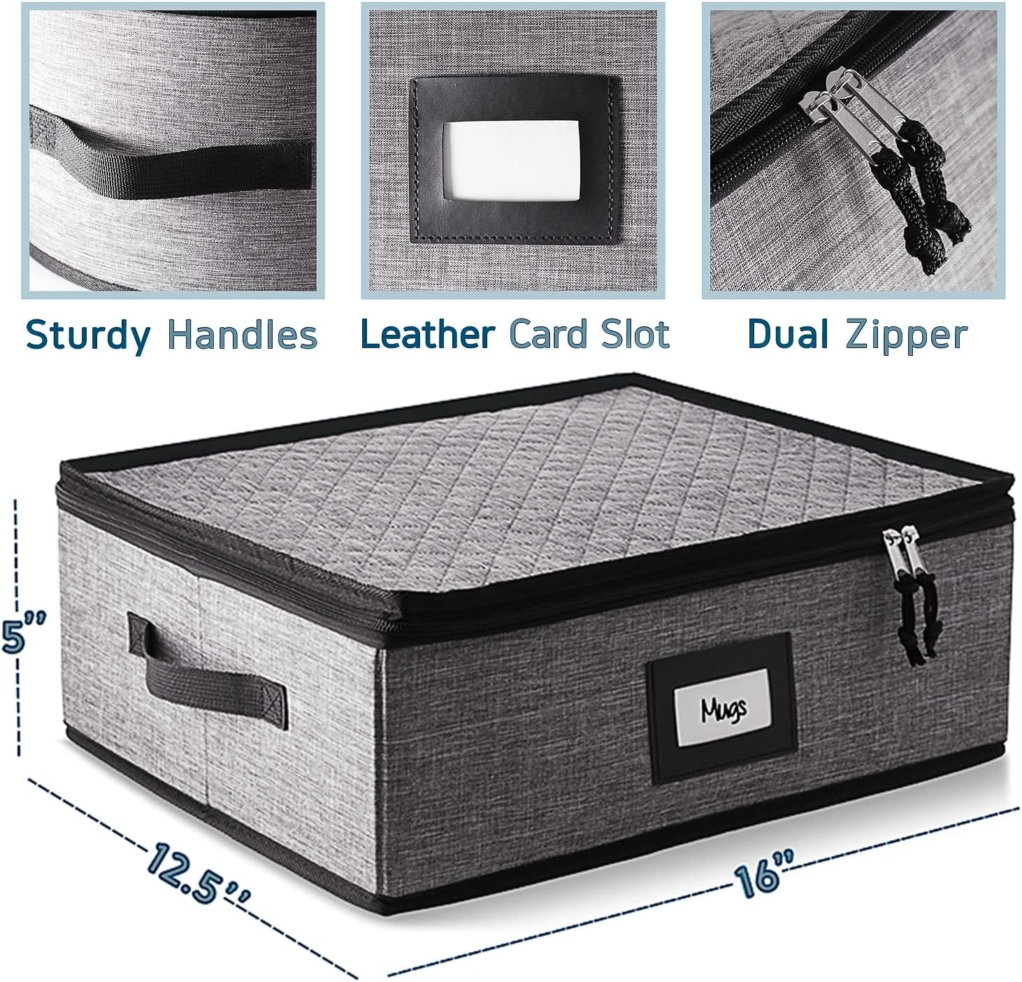 Hearth & Harbor Coffee Mug Storage, Quilted and Stackable Coffee Cup Storage Organizer for Service of 12, Mug Storage Box with Dividers, China Containers Hard Shell for Moving and Organization, Grey
