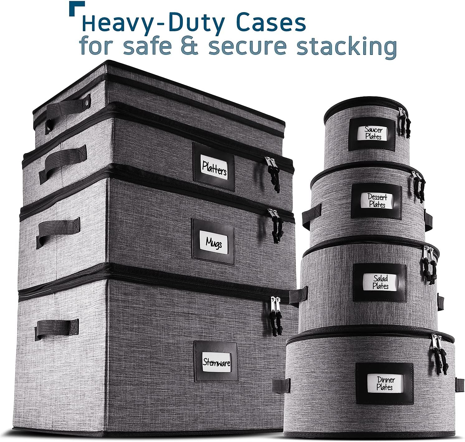 - Convenient and Stylish: Our dish storage protectors boast sturdy handles, zippered lids, and faux leather label slots for neat, elegant kitchen organization and storage.