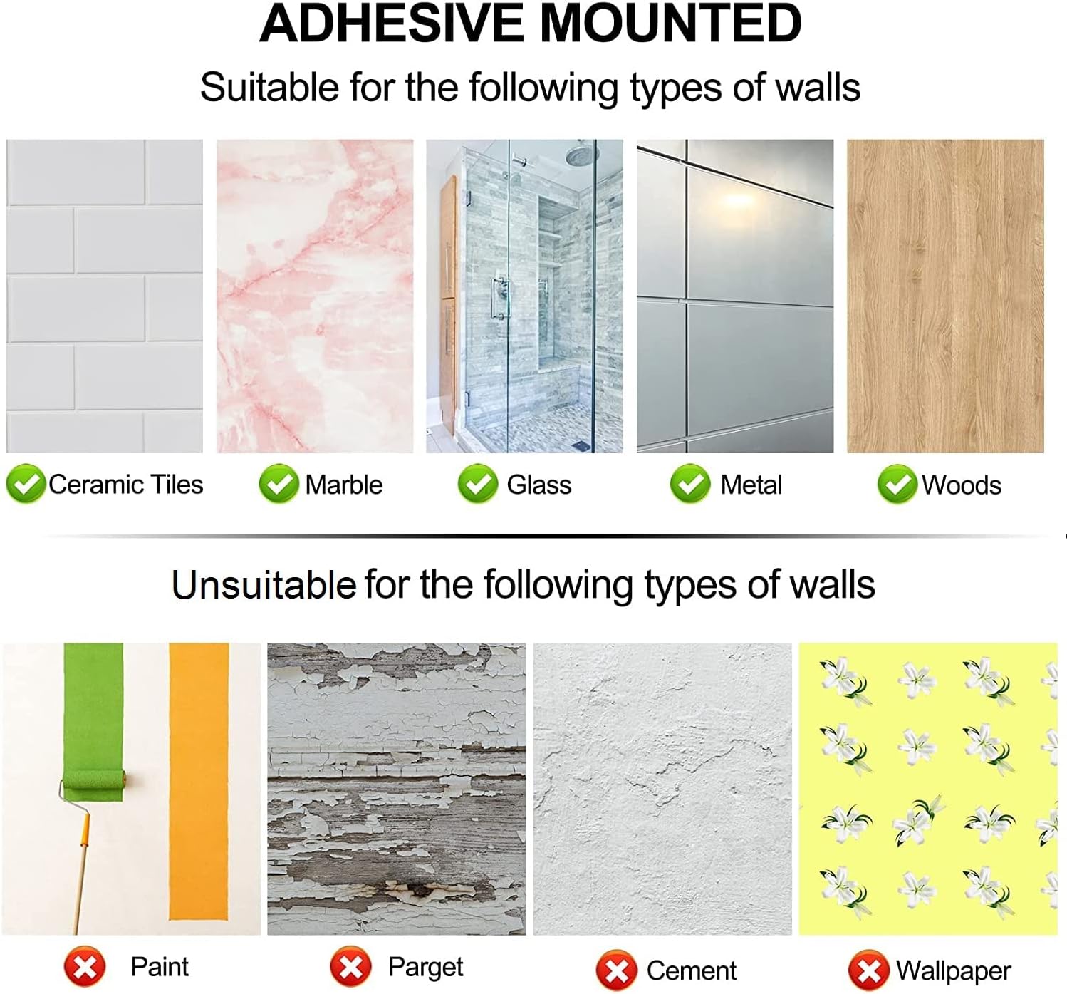 - ✔No Drilling and Easy to Install: Magnetic knife strip comes with double-sided tape without any screws and anchors can protect the wall from being destroyed but that’s ONLY suitable for smooth wall. Please leave it for 24-48 hours before use. Attach the black EVA non-slip pads to both end of the strip back(NOTICE: Avoid scratches on the surface of your fridge), then it's magnetic knife holder for refrigerator.