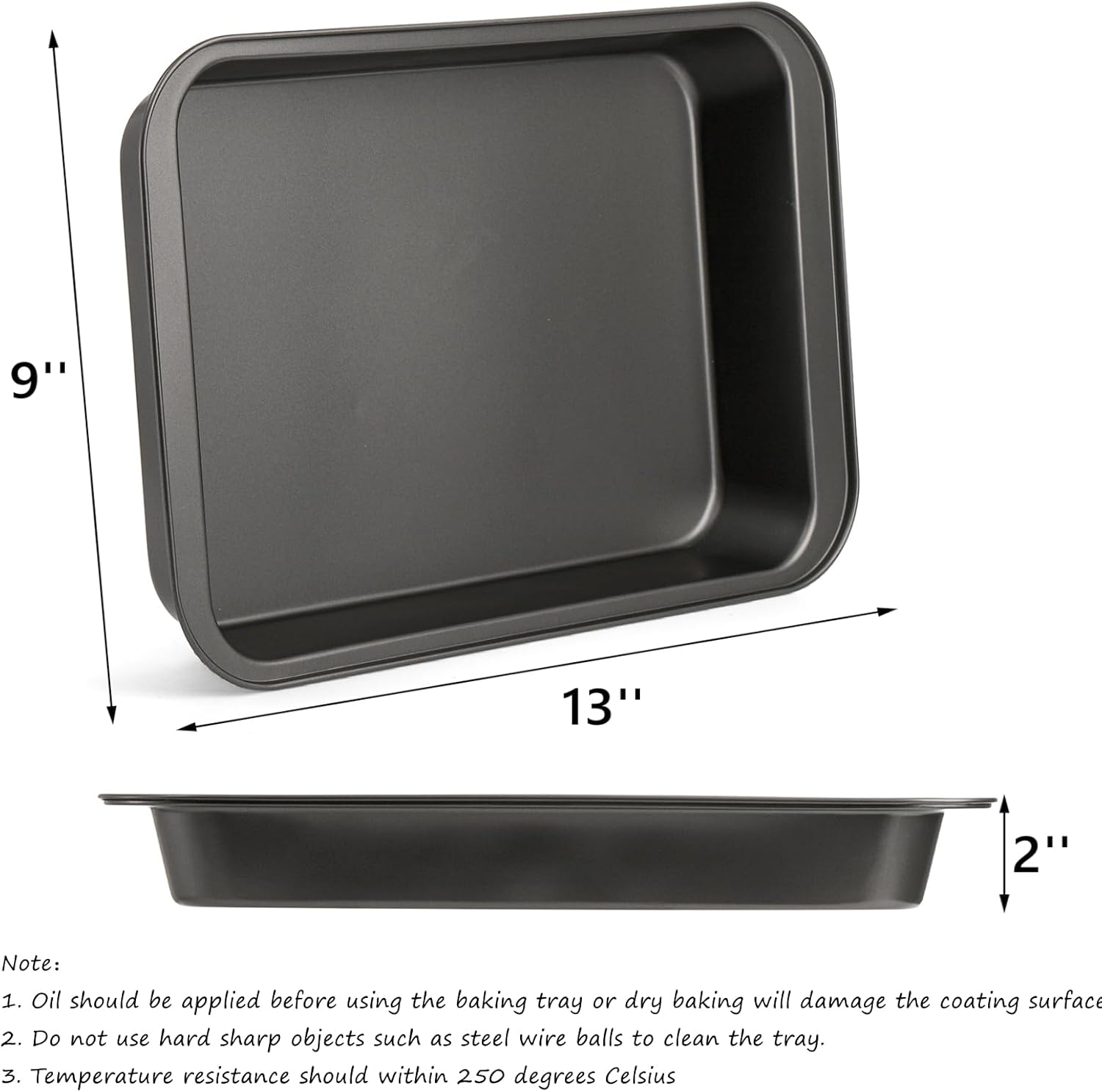 - Package includes 3 pack rectangular oven baking tray, each measures 13''L x 9''W x 2''H, suitable for individually use or nest together for divided cooking to caster your larger party events.