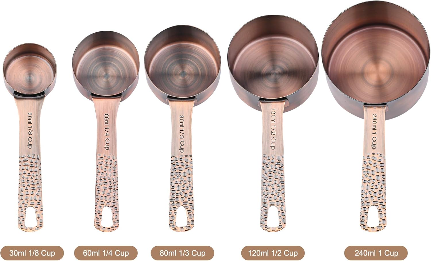 Measuring Cups and Spoons Set 12, Metric & US Copper Measuring Cups and Spoons Set for Kitchen and Baking, Dry & Liquid Metal Measure 5 Cups 6 Spoons With 1 Leveler
