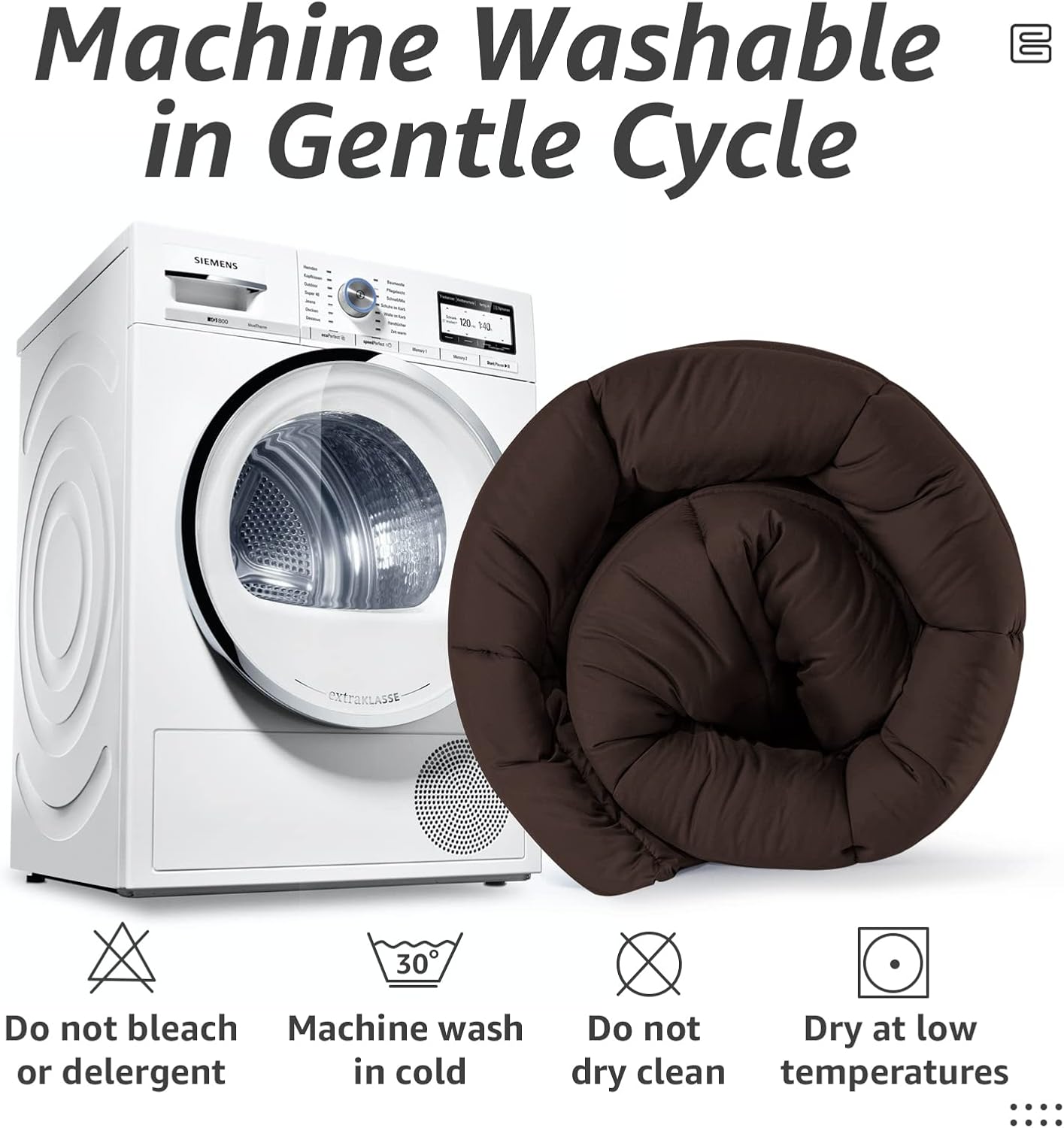 HYLEORY All Season Queen Size Bed Comforter - Cooling Goose Down Alternative Quilted Duvet Insert with Corner Tabs - Winter Warm - Machine Washable - Brown