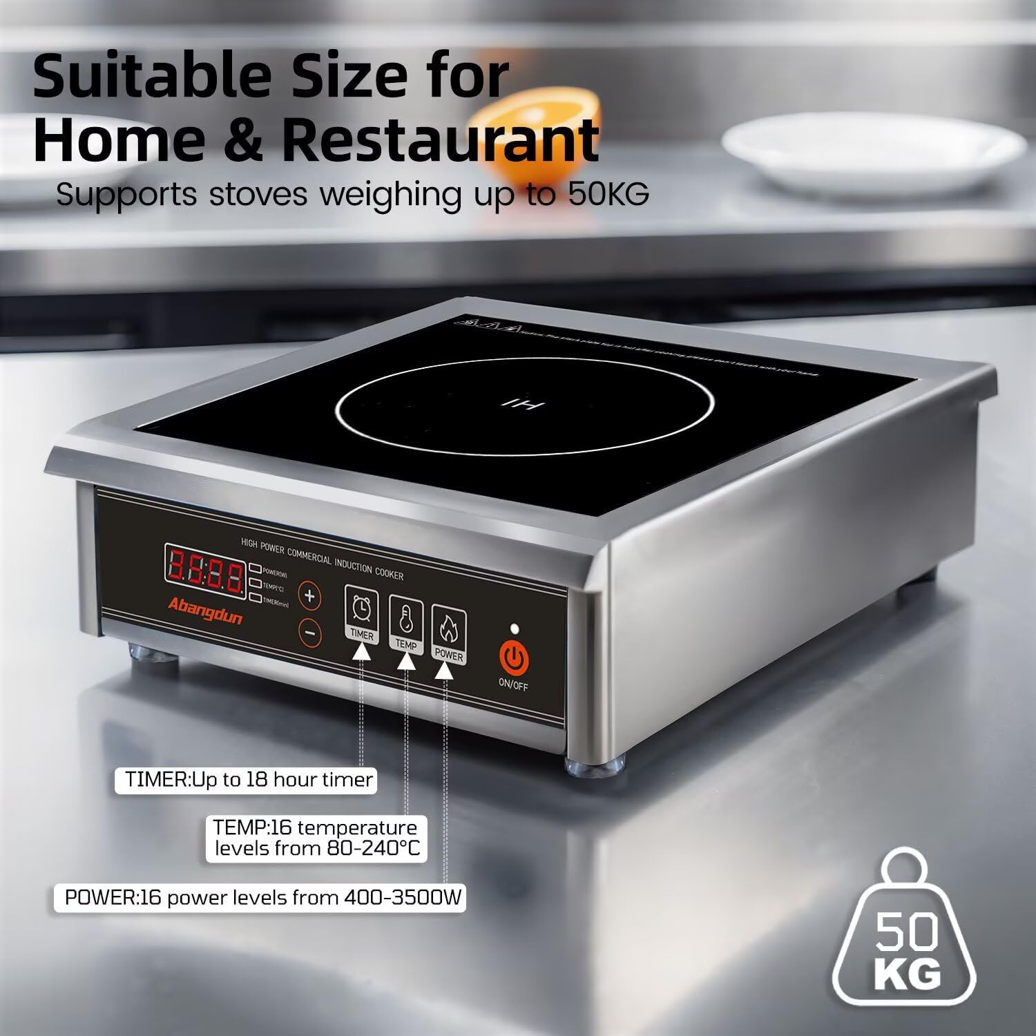 Commercial Induction Cooktop 3500W/240V Induction Burner 18-hour Timer Hot Plate for Kitchen Restaurants Abangdun (Single Burner)