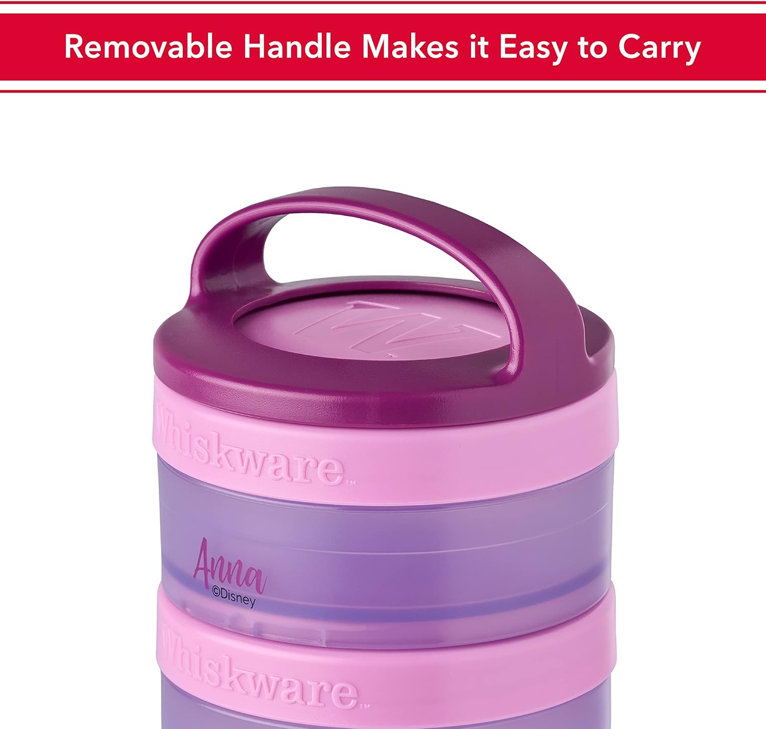 Whiskware Disney Princess Frozen, Stackable Snack Containers for Kids, Durable Food Storage Containers for Daycare, Car, and Airplane Travel, Dishwasher Safe, Anna and Olaf