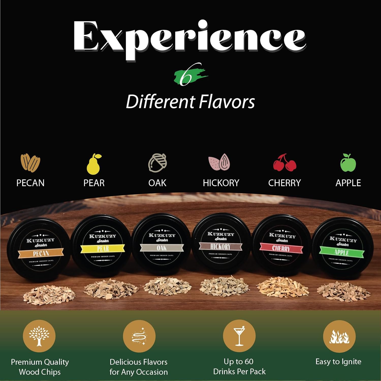 - 【Glass Top Whiskey Smoker Infuser Kit】Enjoy your Cocktail, Whiskey, or Bourbon with the added depth of smoked flavor! Perfect for a whiskey straight up, on the rocks, or any mixed drinks! Smoking chips in a variety of delicious flavors, allowing you to create the perfect mood for any occasion.