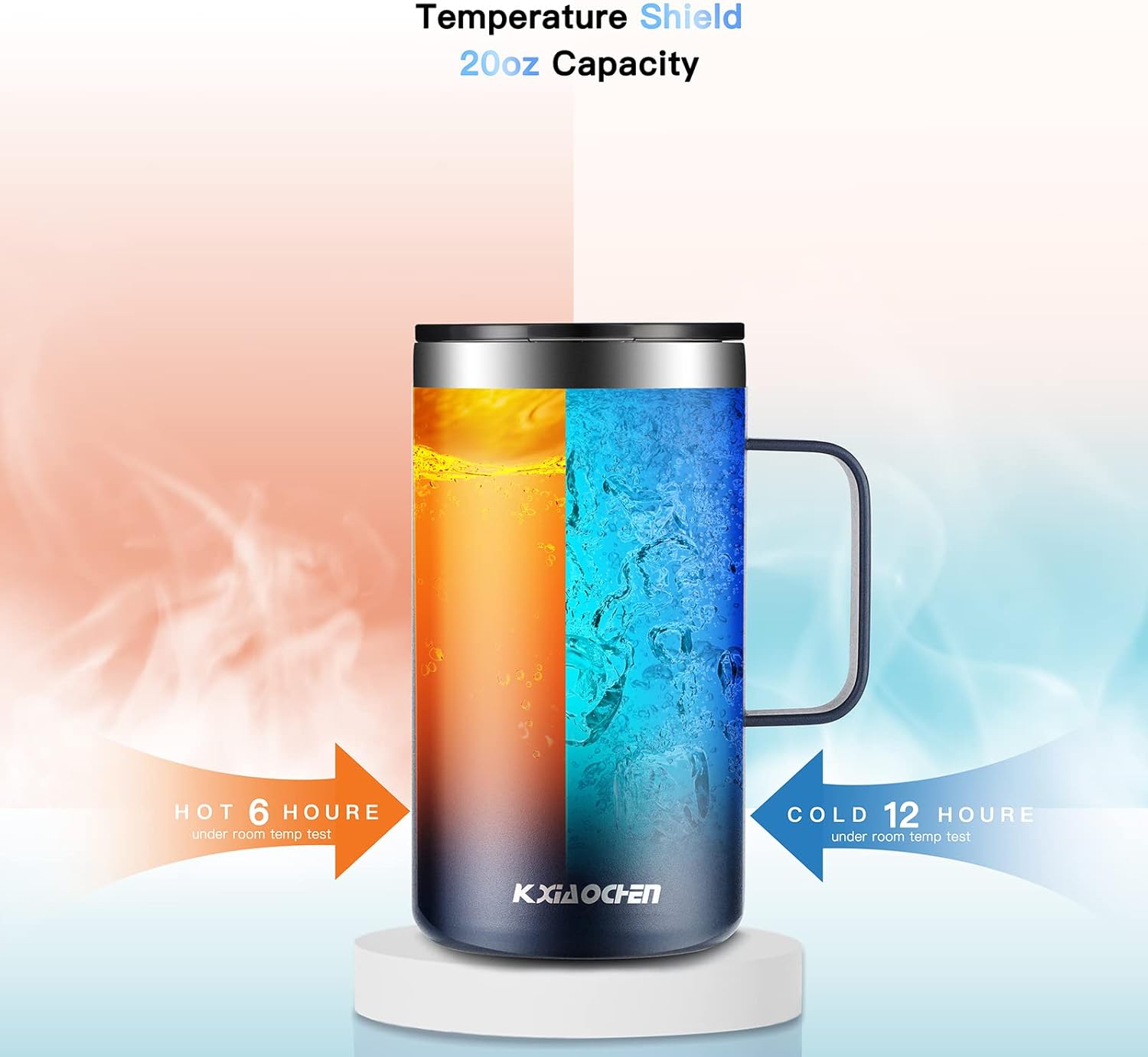 - INSULATED COFFEE MUG WITH HANDLE: 20oz coffee cup is large enough for heavy coffee lover at work, and also can be in beer gardens, home brews and the party. Insulated coffee mug with lid designed to keep your favorite hot, cold and carbonated beverages at the perfect temperature on the go.