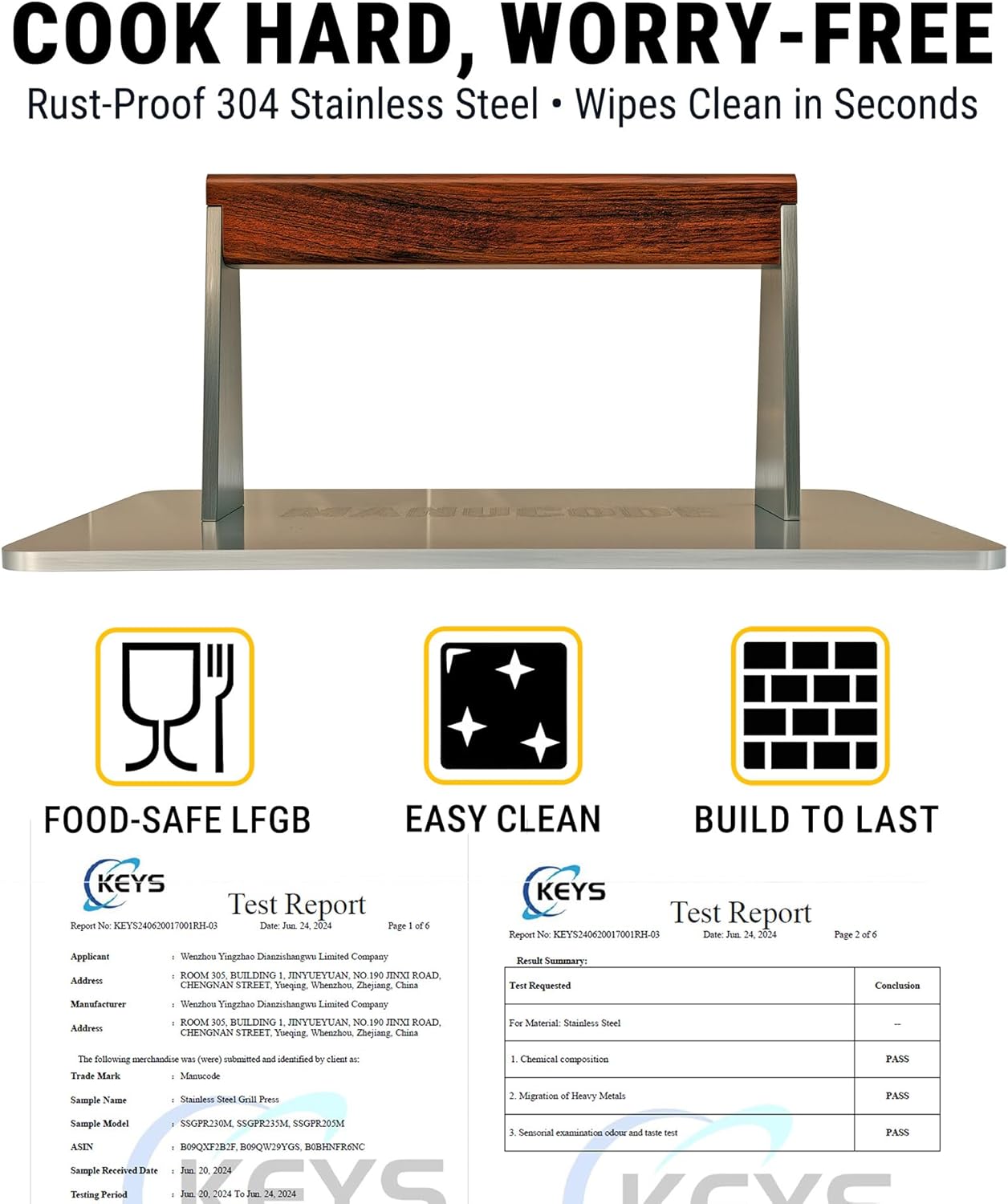- COOK MORE, WORRY LESS: Our cooking weight is made from non-magnetic austenitic stainless steel, ensuring it's rust-proof and built to last. Say goodbye to tedious cleaning and seasoning and fully immerse in the joy of cooking--with zero concerns about tool upkeep or food safety