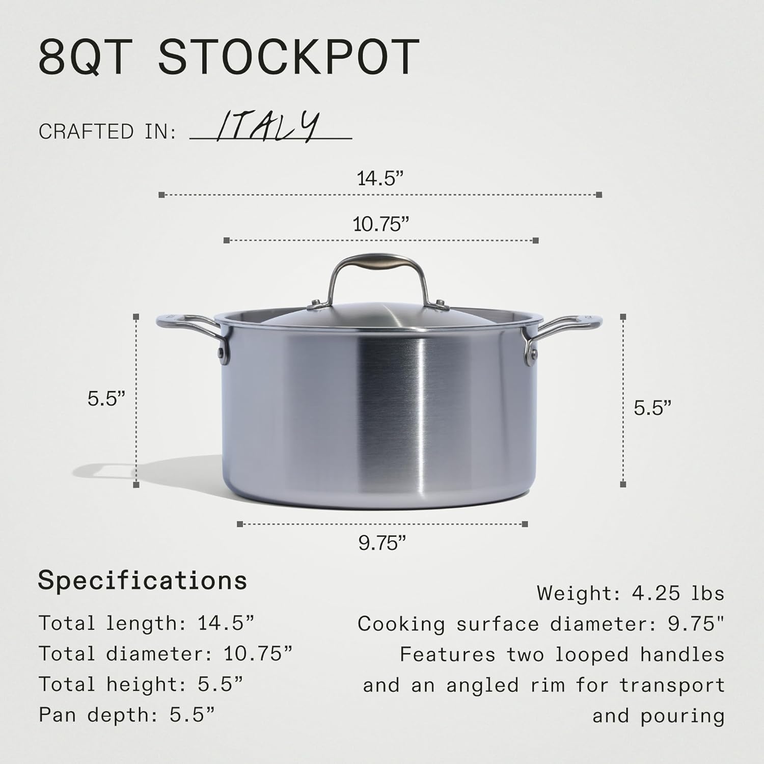 Made In Cookware - 8 Quart Stainless Steel Stock Pot With Lid - 5 Ply Stainless Clad - Professional Cookware - Crafted in Italy - Induction Compatible