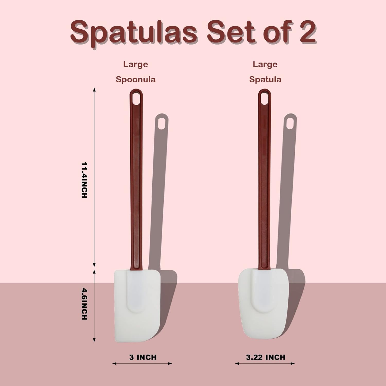 - 【Silicone Spatula Set】 The product contains two silicone spatulas, one is flat and one is spoon type head, which can fit any shape of container. There are three different sizes of 9.5"/13.5"/16.5" for you to choose from, which can meet your different needs