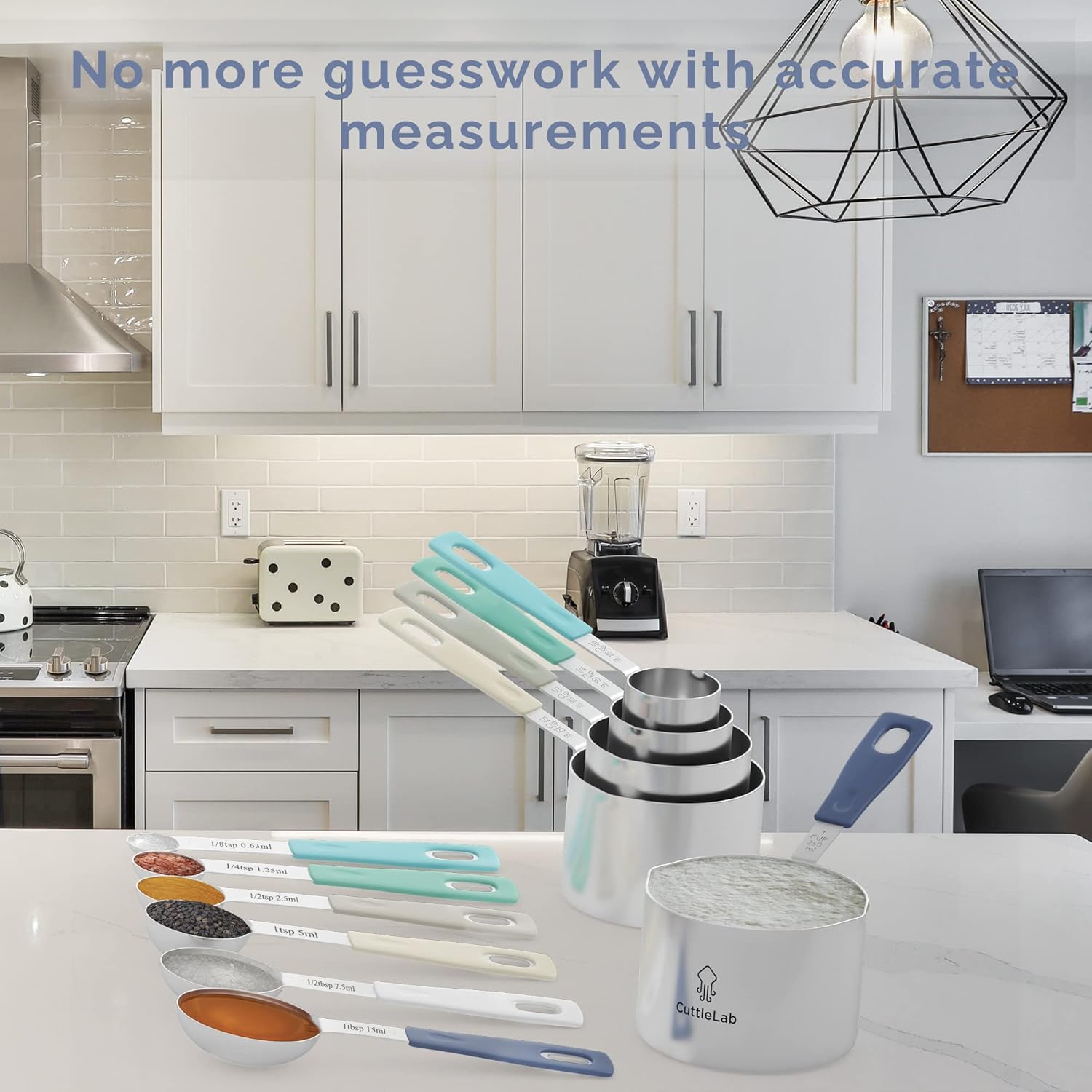 Measuring Cups and Measuring Spoons Set of 14 - Stainless Steel Measuring Cups and Spoons Set, Includes 1/8 Teaspoon Measuring Spoon, 1/8 Cup Measuring Cup, Leveler Dry (14, Farmhouse)