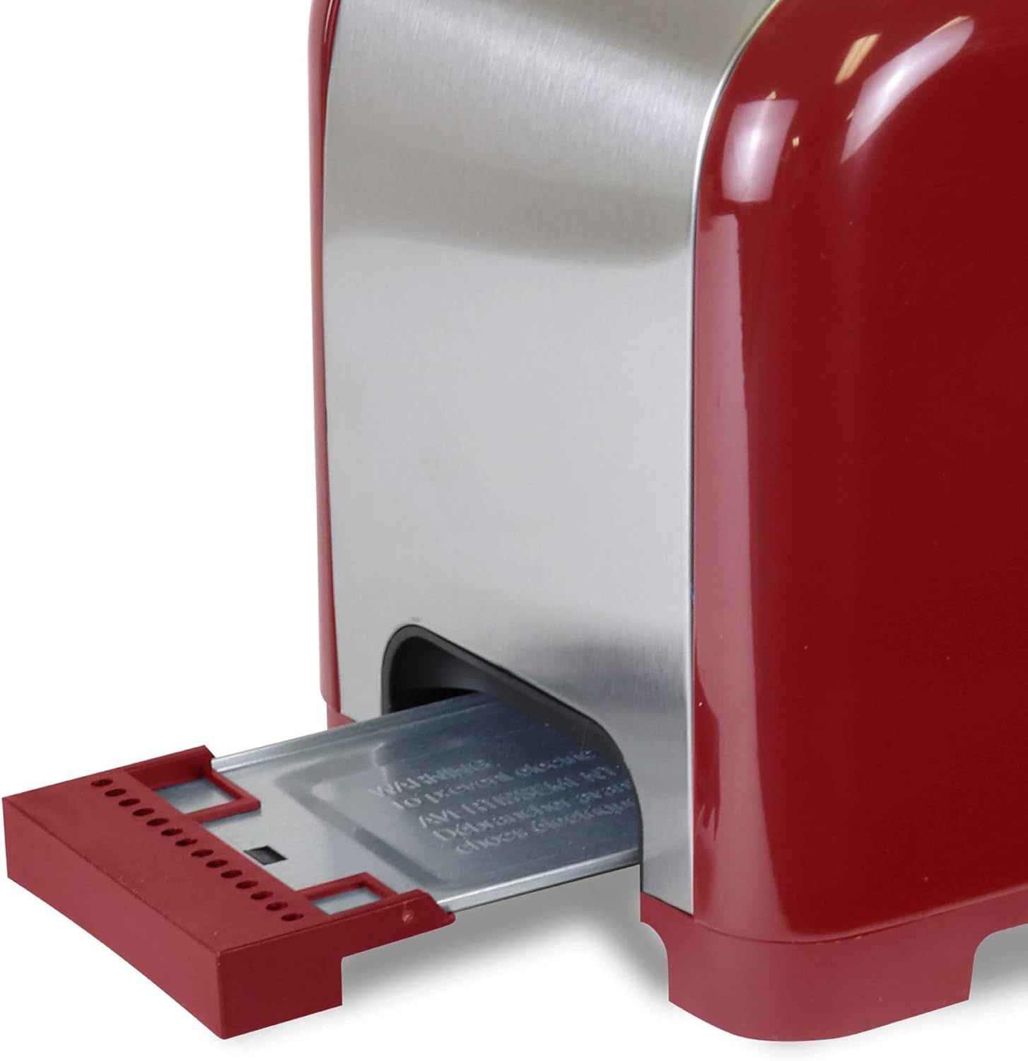 Koolatron Kenmore 2-Slice Toaster, Stainless Steel, Red and Silver, with Extra Wide Slots, Self-Adjusting Bread Guides, Defrost, Bagel and Removable Crumb Tray, Small (KKTS2SR AZ)