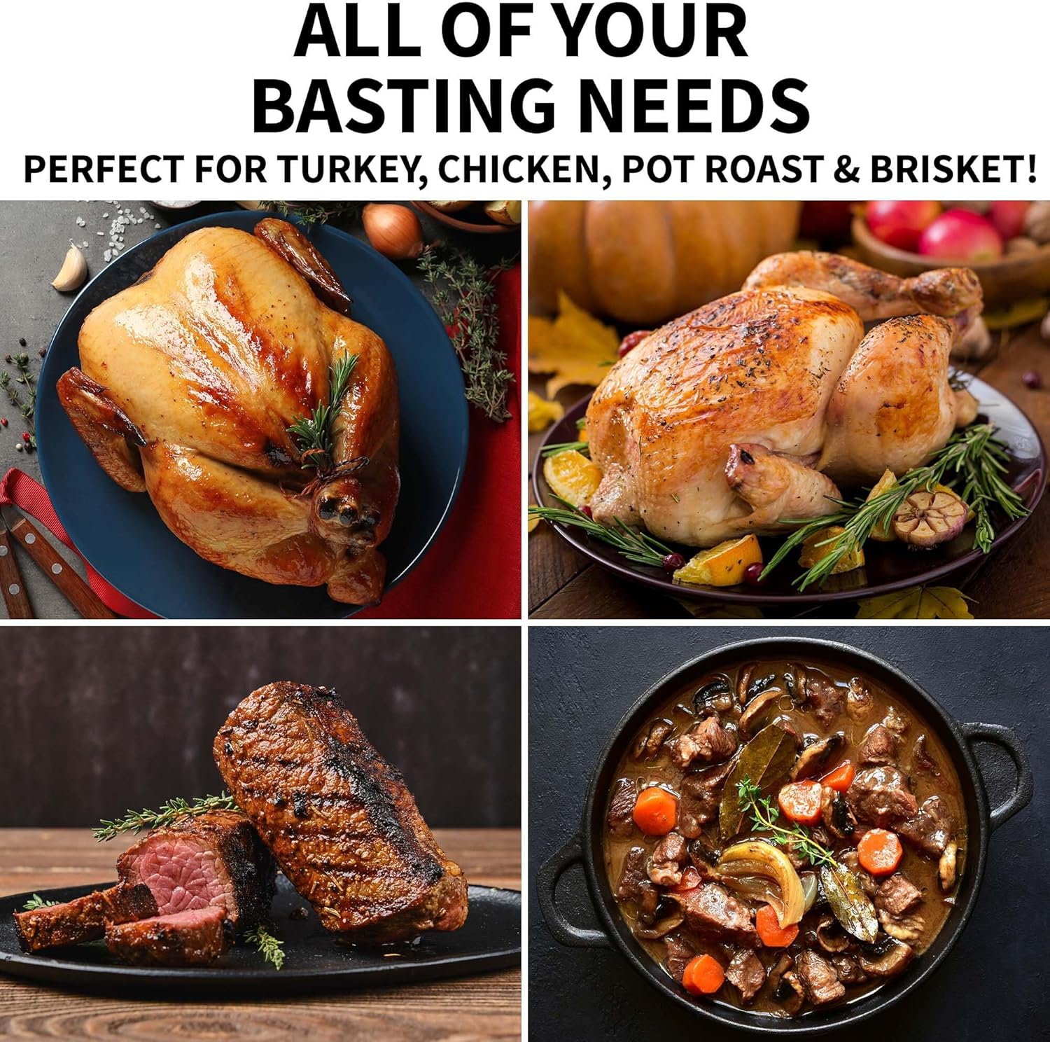 - IDEAL BASTER FOR COOKING: Impress your family with a juicy, meaty feast at a family, Thanksgiving or Christmas dinner with our durable turkey baster syringe. Its stainless steel construction allows you to dip the baster in even the hottest meals, while the silicone bulb remains cool to touch (heat resistant up to 450°F).