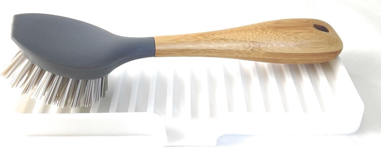 - A More Hygienic Home | A dedicated space for your dishwashing supplies, bathroom sink items, shower niche/shelf items. Tray and drain chute are slightly sloped to help funnel excess water away.Thick, sturdy base stays in place without suction while raised lines promote air flow, so items dry faster and are less prone to developing nasty odors.