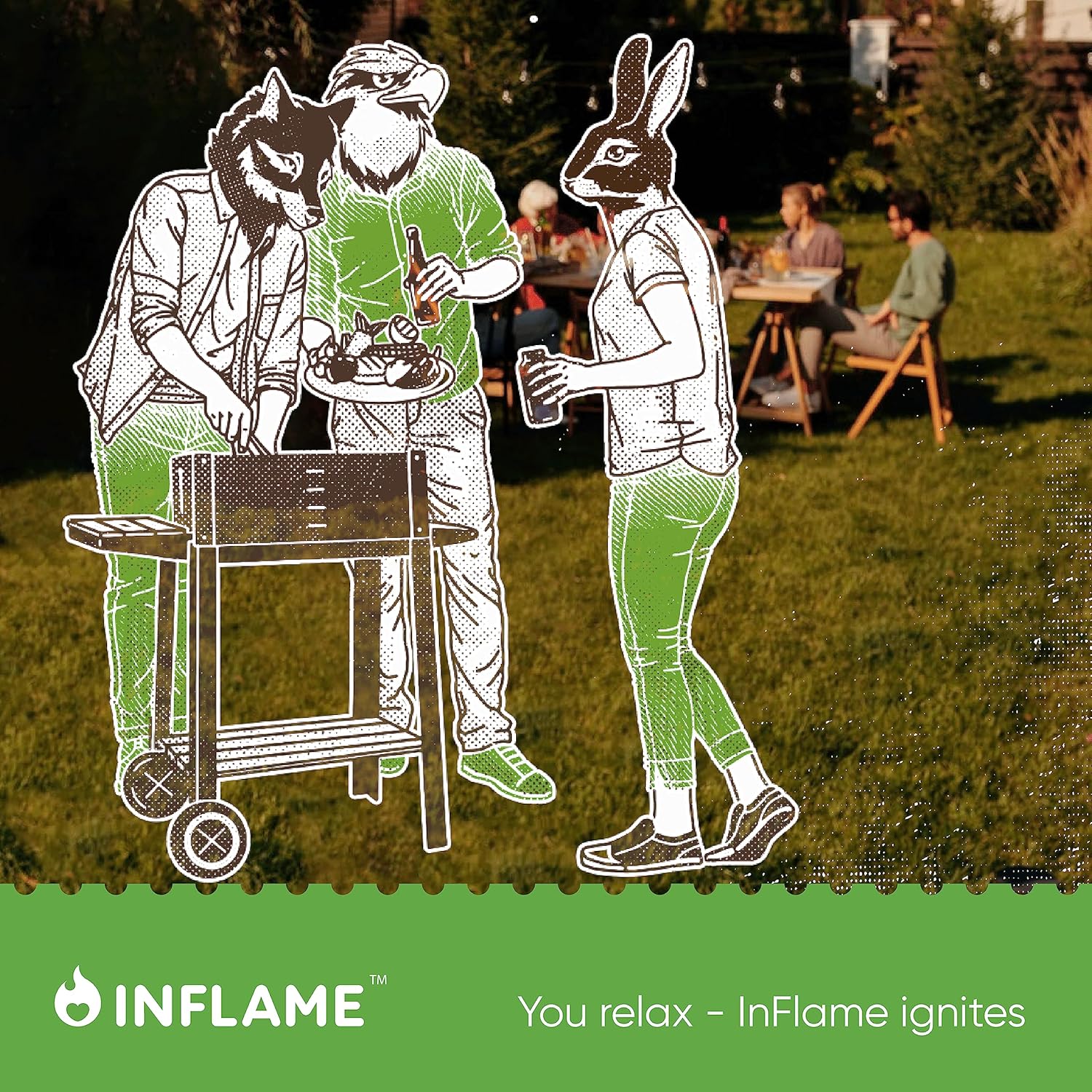 - Easy Fire: Take one or two Inflame firestarter from the box. Place starter under the wood or charcoal, and light each firestarter on the side of the piece.