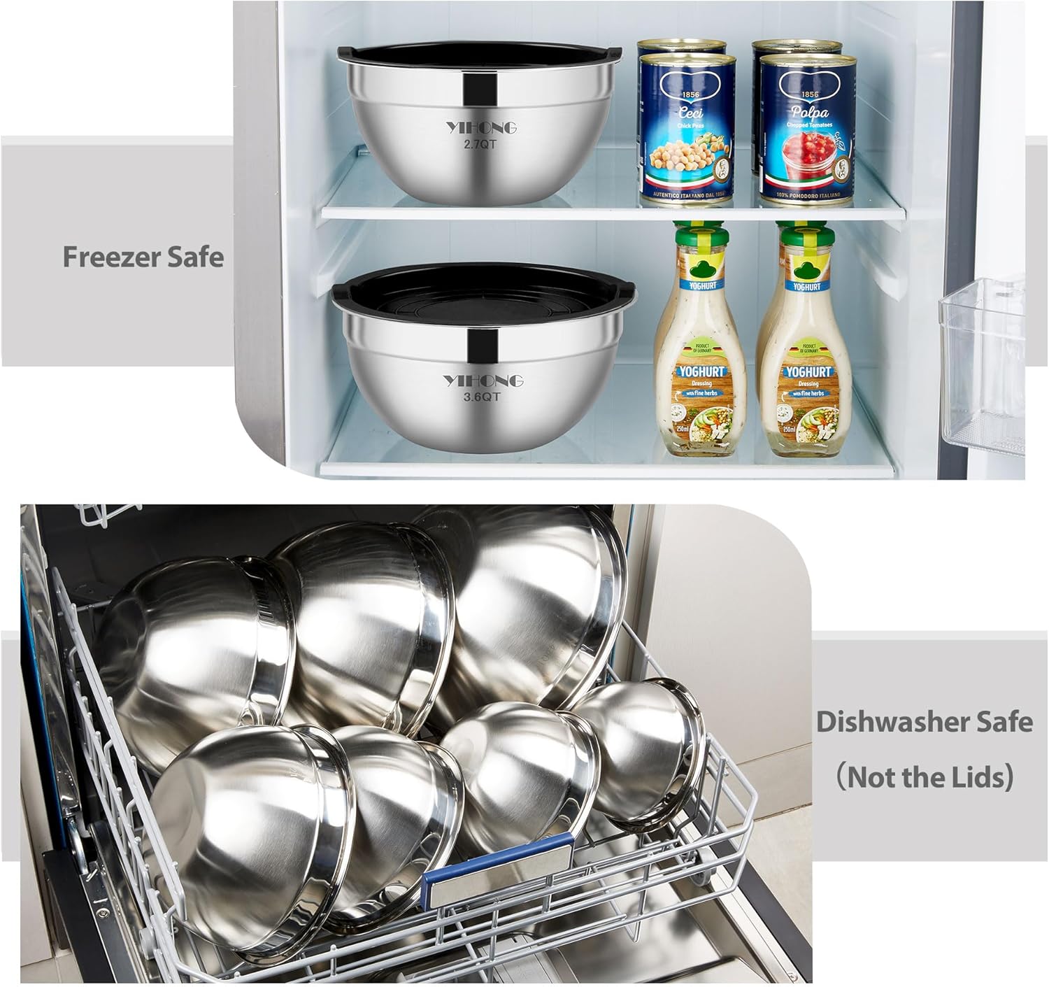 - Durable and High Quality — Made of high-quality stainless steel for lasting use, which is resistant and rustproof. These mixing bowls are dishwasher safe, more convenient for you and your family.