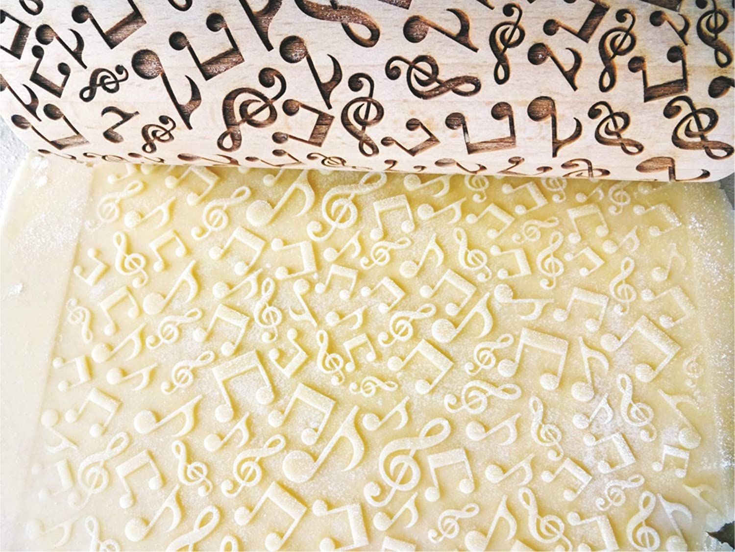 MELODY EMBOSSING ROLLING PIN with NOTES LASER ENGRAVED for EMBOSSED COOKIES GIFT FOR MUSICIAN