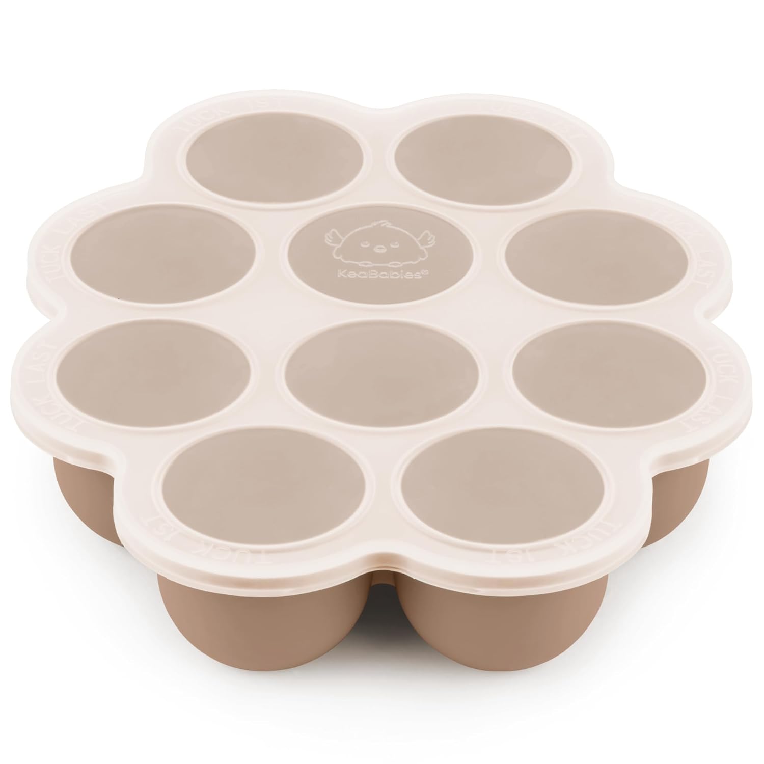 KeaBabies Silicone Food Freezer Trays with Lid, 2oz x 10 Pods Baby Food Storage Containers, Easy Puree Meal Prep, Breast Milk Silicone Freezer Molds, Dishwasher, Microwave Safe,BPA-Free(Chai Latte)