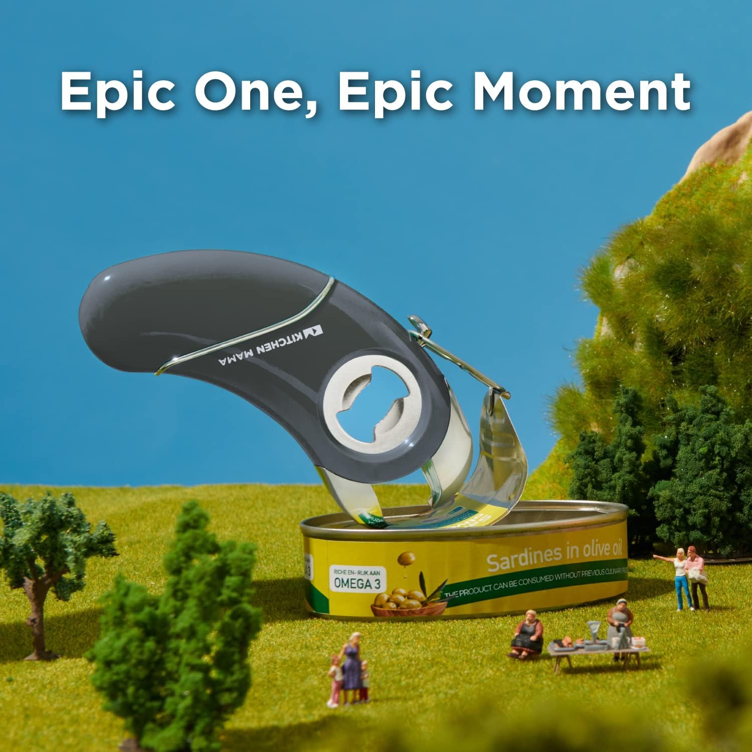 Kitchen Mama Epic One Multifunction Opener: Magnetic Bottle Opener, Beer Soda Opener, Effortless Jar Lid Opener for Seniors Elderly with weak Hand and Arthritis, Essential Kitchen Gadget (Metal Gray)