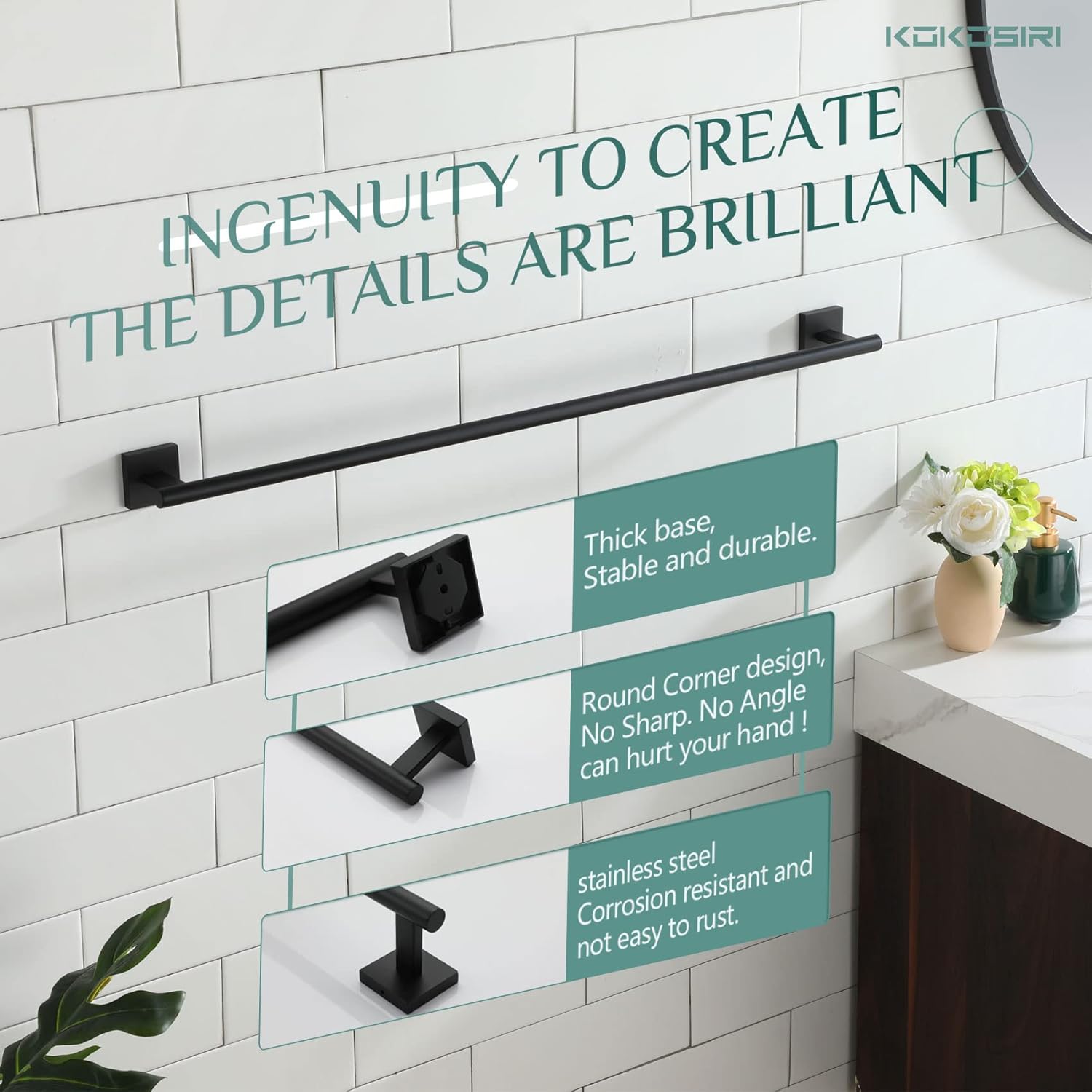 KOKOSIRI 36'' Towel Rails Bathroom Towel Bars Matte Black 36 Inch Bath Towel Holder for Washroom Kitchen Wall Stainless Steel B4005BK-L36