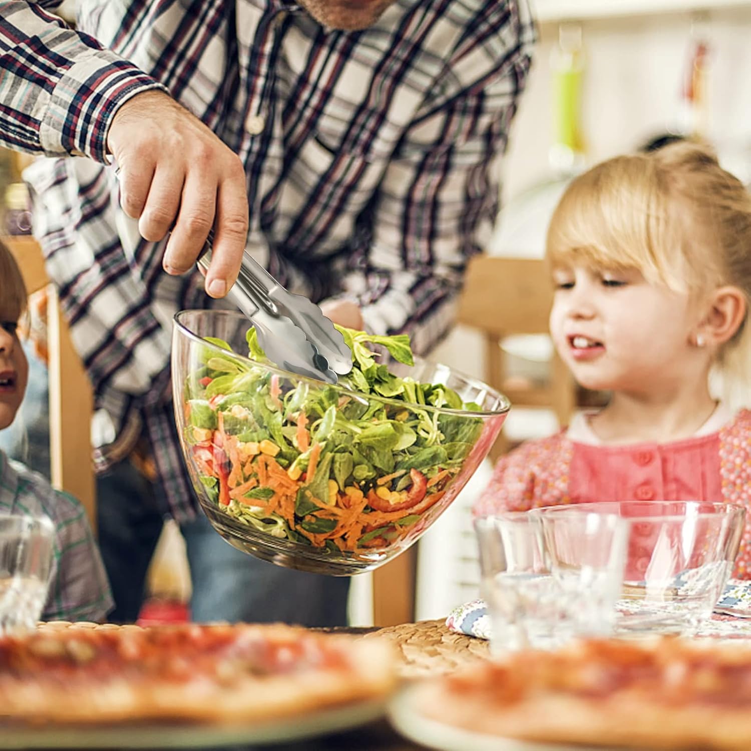 - How to use - The serving tongs are applicable for flipping burgers or fish, grilling meat or as salad tongs. Stainless Steel Metal Serving tongs work well on buffet, catering, wedding, home, party, restaurant, hotel, celebration. Ideal for serving salads, fruit, soups, dessert, steak, noodles, cake, cheese, vegetables, appetizer.