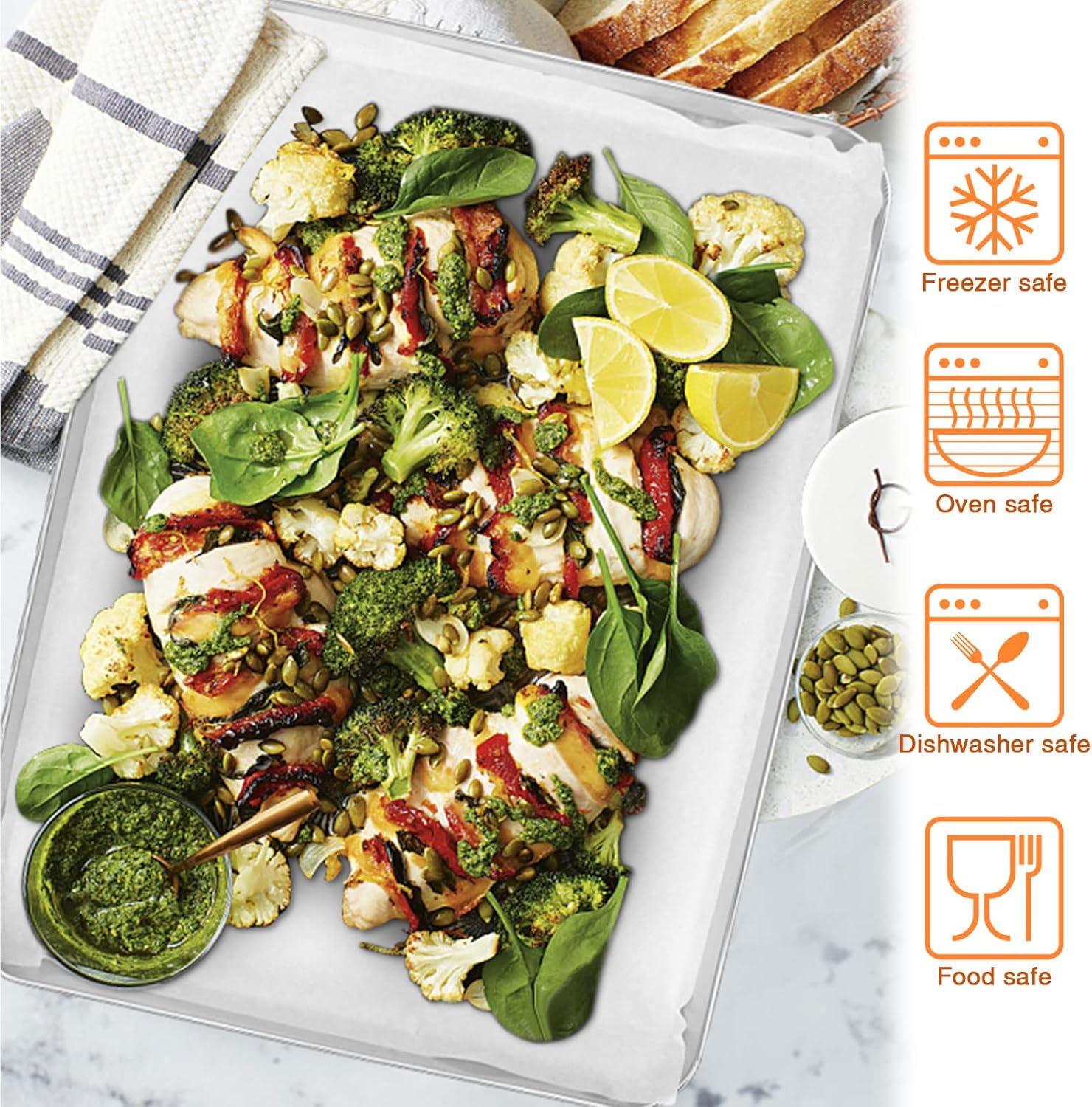 - 【HEALTHY & STURDY】Made of pure stainless steel without toxin, Ensure no harmful substances leaching on to food at high heat baking, Heavy-gauge steel stands up to the rigors of daily cooking, Superior to Teflon/aluminum/nonstick coating pan, Durable enough to last a lifetime