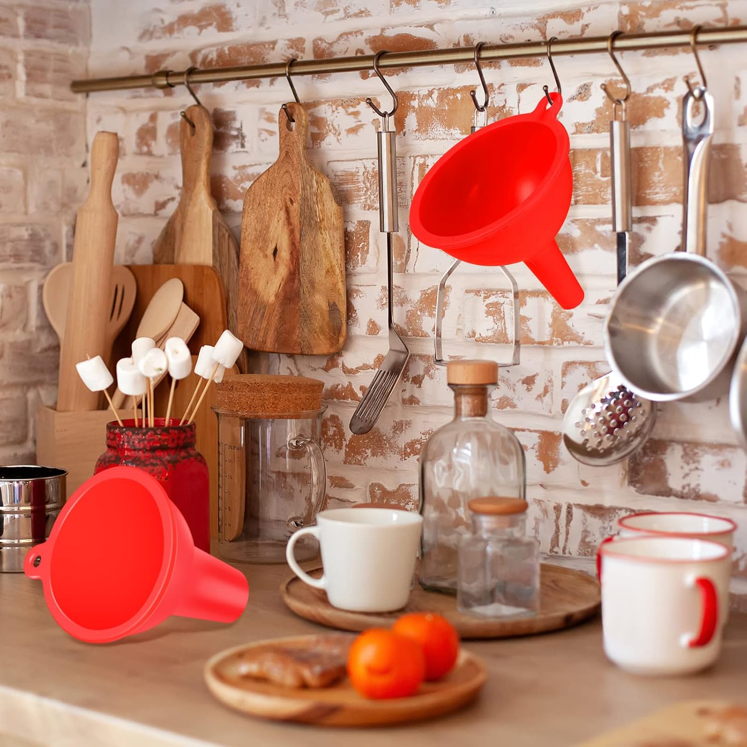 4 Pcs Kitchen Funnel Set Canning Silicone Funnel, Small and Large, Wide Mouth for Jars Jam Spice Filling Bottles Liquid Oil and Powder(Red)