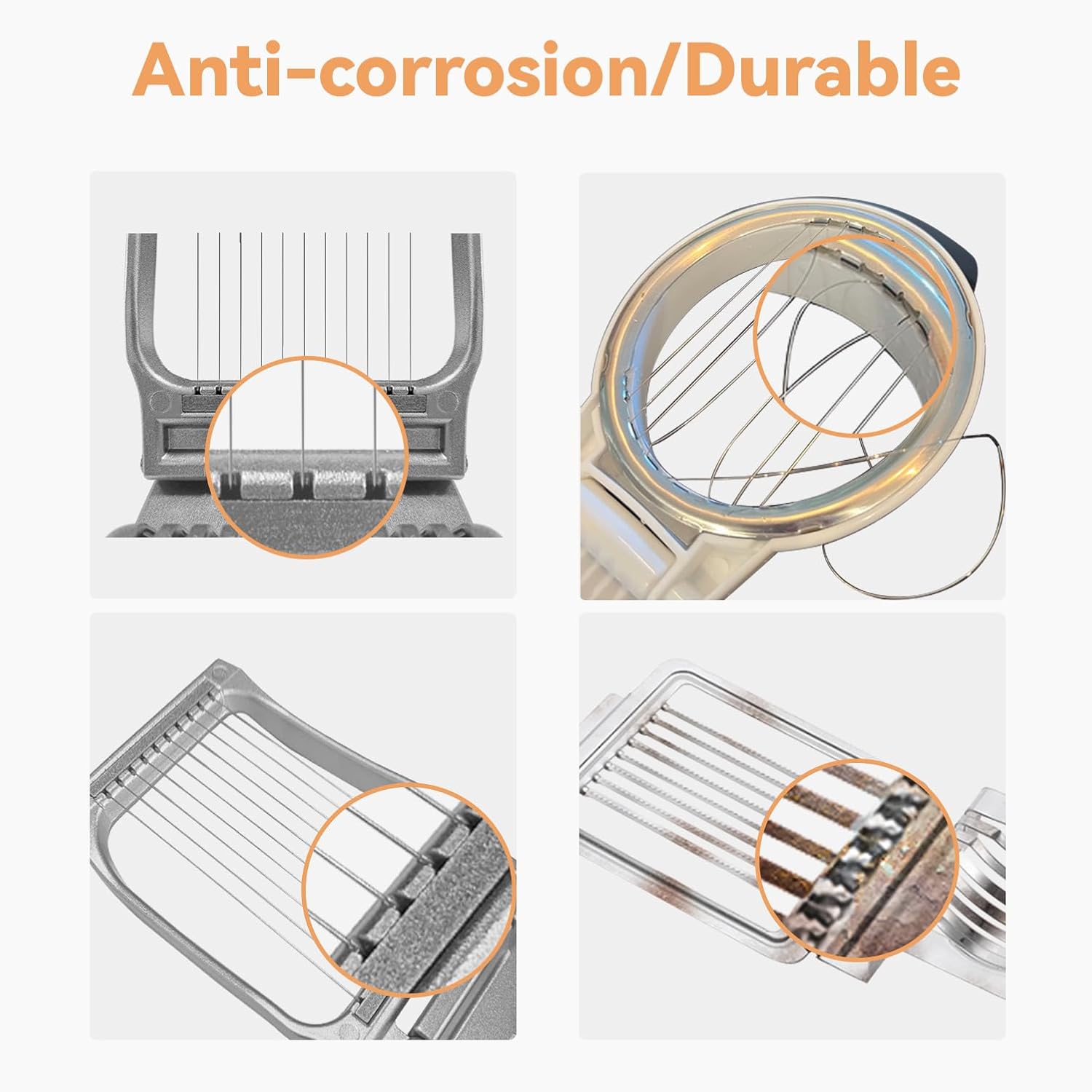 - High quality stainless steel wire makes it easy to slice eggs.