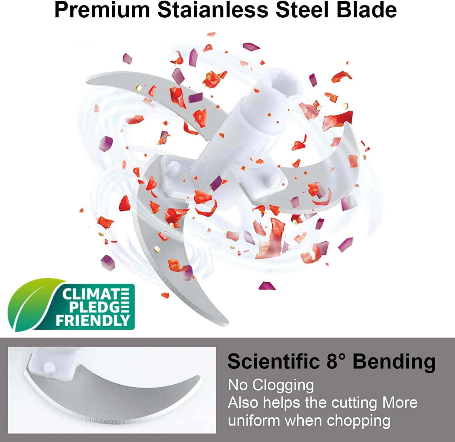 - Makes Everything Faster : The food chopper is equipped with 420 surgical stainless steel blades, which helps easier chop with less effort. Just rotate the handle then everything will be done in seconds
