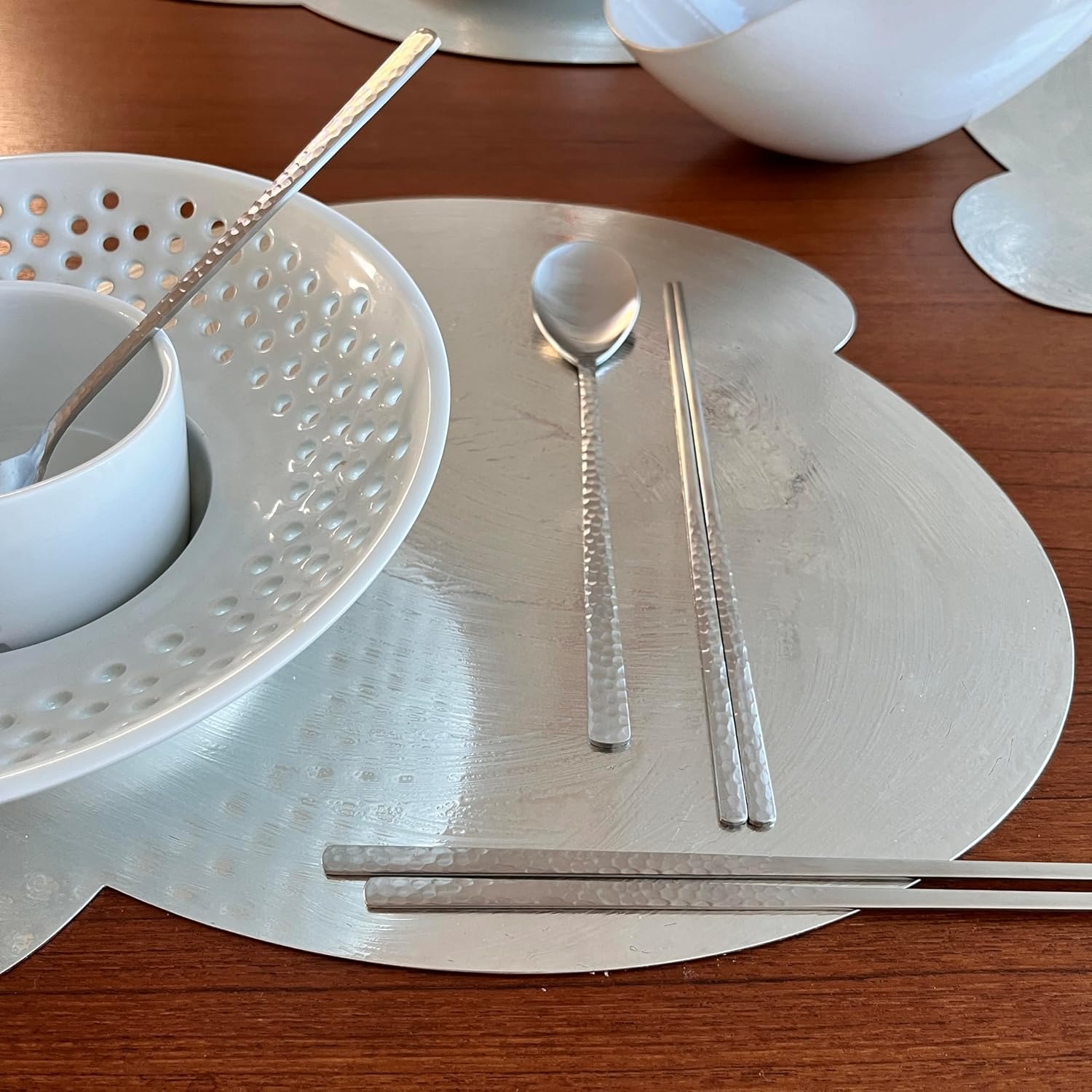 Korean Made Silver Glossy Hammered Stainless Steel Korean Spoon & Chopstick SET Stocking Stuffer Gift for Mom (2SET)