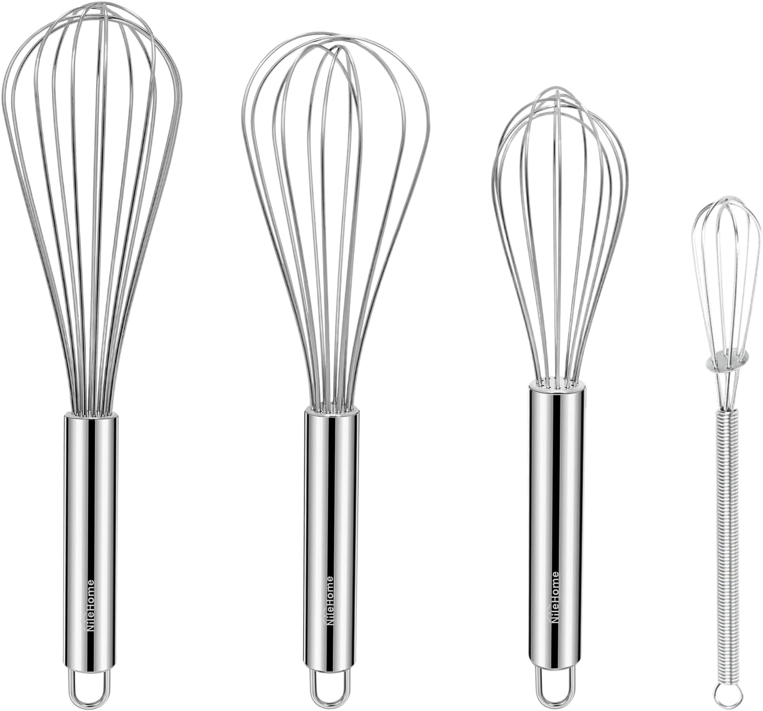 NileHome Stainless Steel Whisk Set 8" 10" 12" Kitchen Whisk Kitchen Wisk Wire Whisks for Cooking, Whisking, Blending, Beating, Stirring-4 Pack