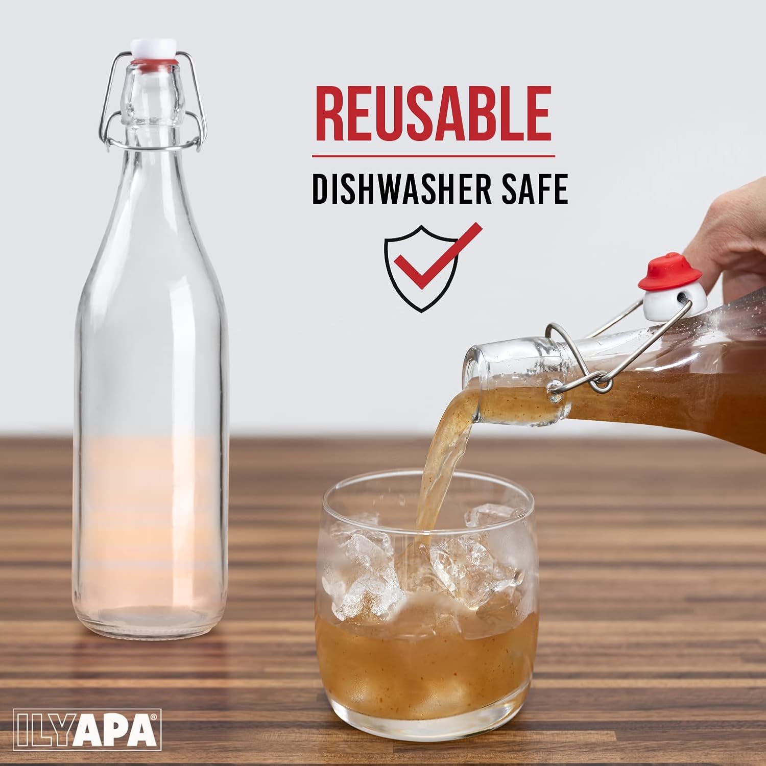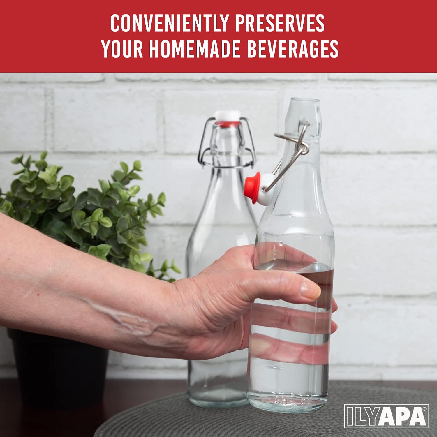 Ilyapa 16 oz Clear Flip Top Glass Beer Bottles for Home Brewing, Set of 12 Heavy Duty Glasses