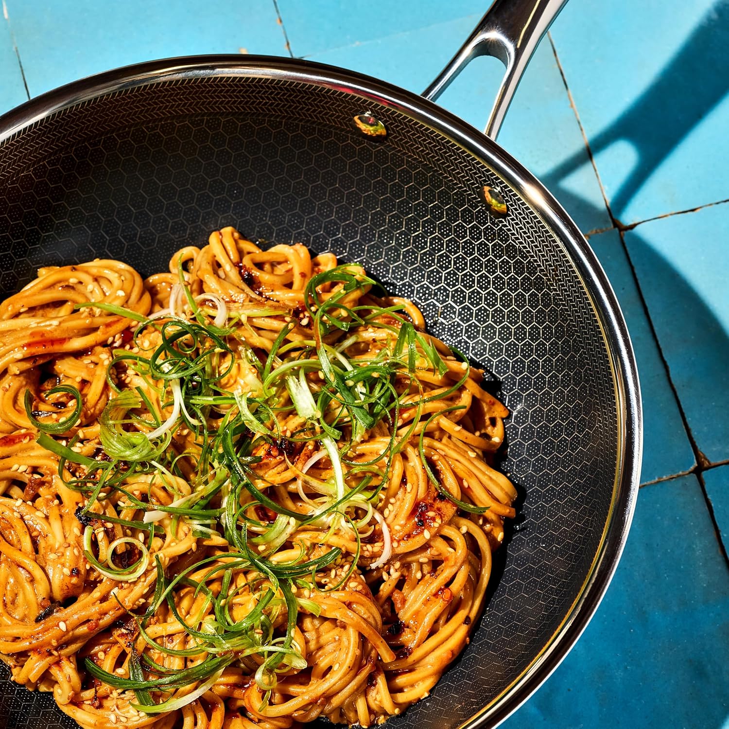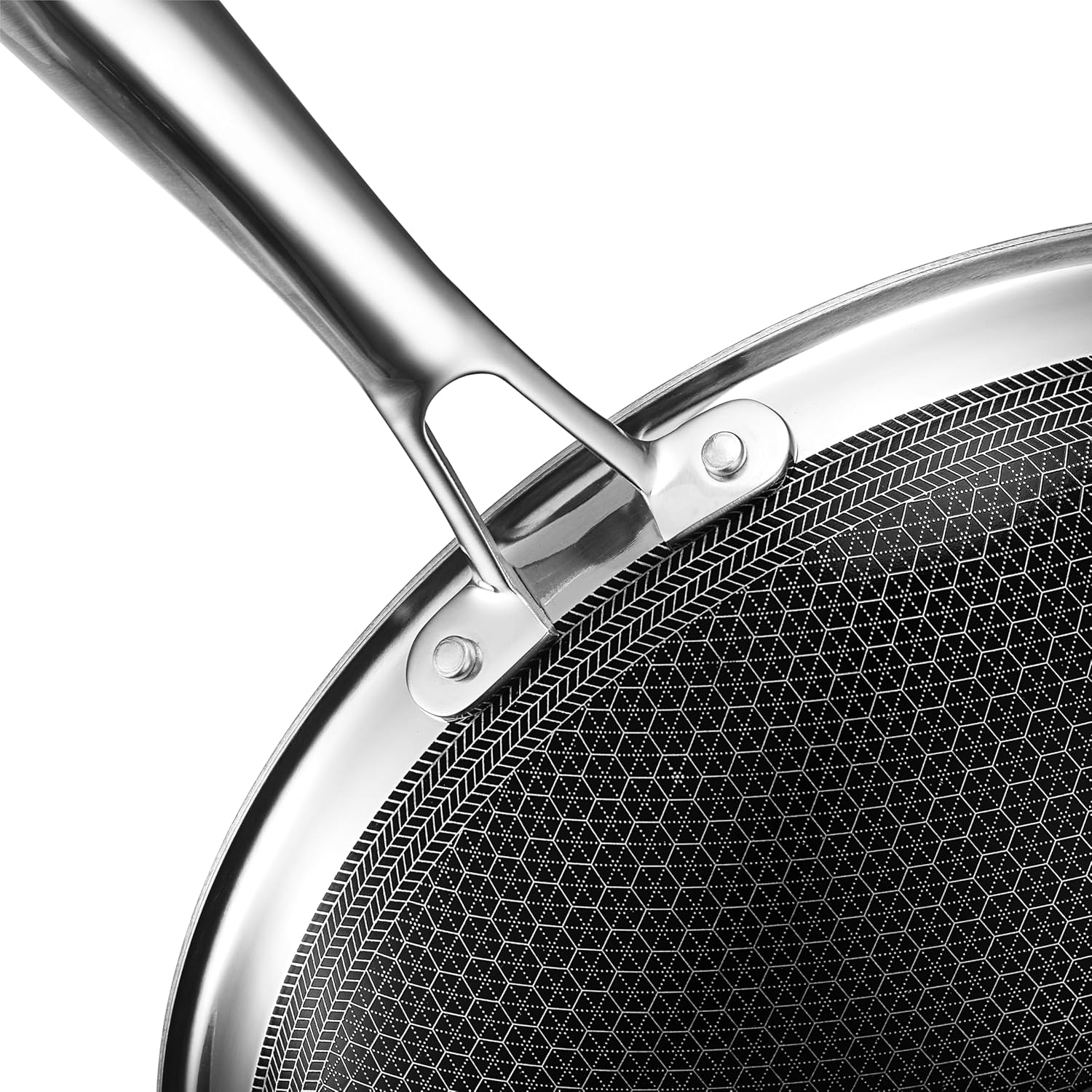 - HexClad’s patented Hybrid technology features a laser-etched hexagonal nonstick surface that combines both stainless-steel and our TerraBond ceramic coating for the ultimate sear and easy cleaning.