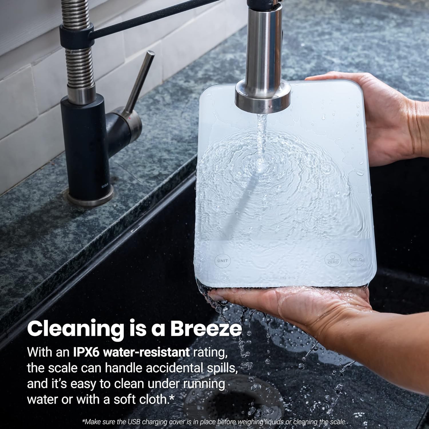 - ๐ช๐ฎ๐๐ฒ๐ฟ-๐ฅ๐ฒ๐๐ถ๐๐๐ฎ๐ป๐ ๐๐ฒ๐๐ถ๐ด๐ป: The scale features an IPX6 water-resistant design, allowing you to easily measure liquids and wipe the scale clean