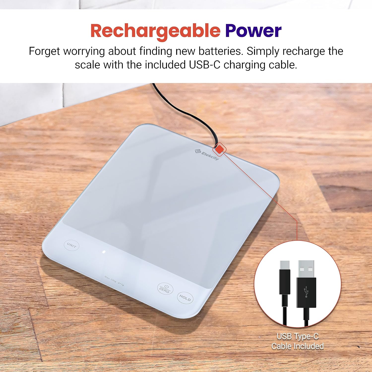 - ๐ฅ๐ฒ๐ฐ๐ต๐ฎ๐ฟ๐ด๐ฒ๐ฎ๐ฏ๐น๐ฒ ๐๐ฎ๐๐๐ฒ๐ฟ๐: The scale also features a 300mAh rechargeable battery and comes with a USB-C charging cable