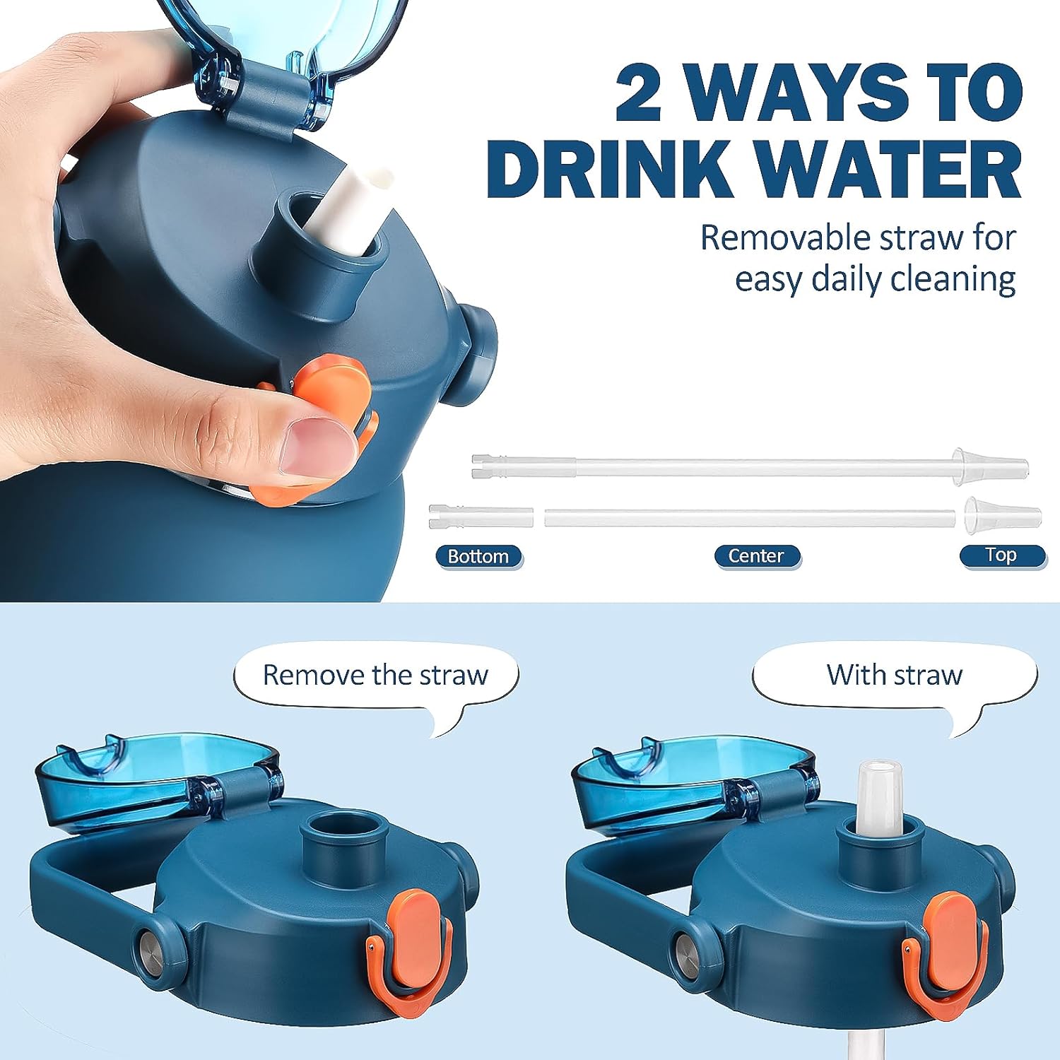 - ❤High-Quality Borosilicate Glass Bottle- This large motivationla water bottle is made of odorless, quality, borosilicate glass. Straw and lid are made of food-grade PP, BPA-free and eco-friendly.