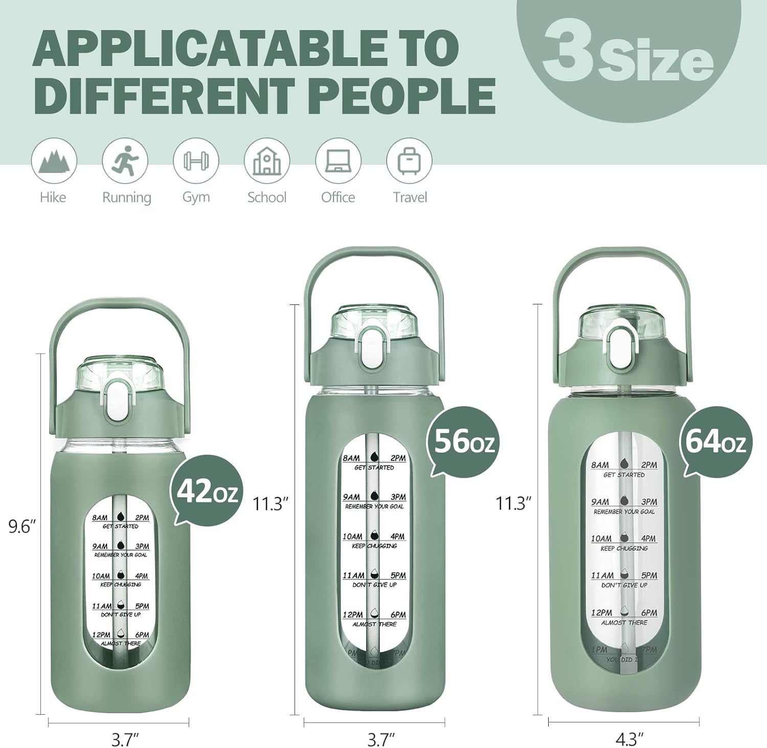 - ❤High-Quality Borosilicate Glass Bottle- This large motivational water bottle is made of odorless, quality, borosilicate glass. Straw and lid are made of food-grade PP, BPA-free and eco-friendly.