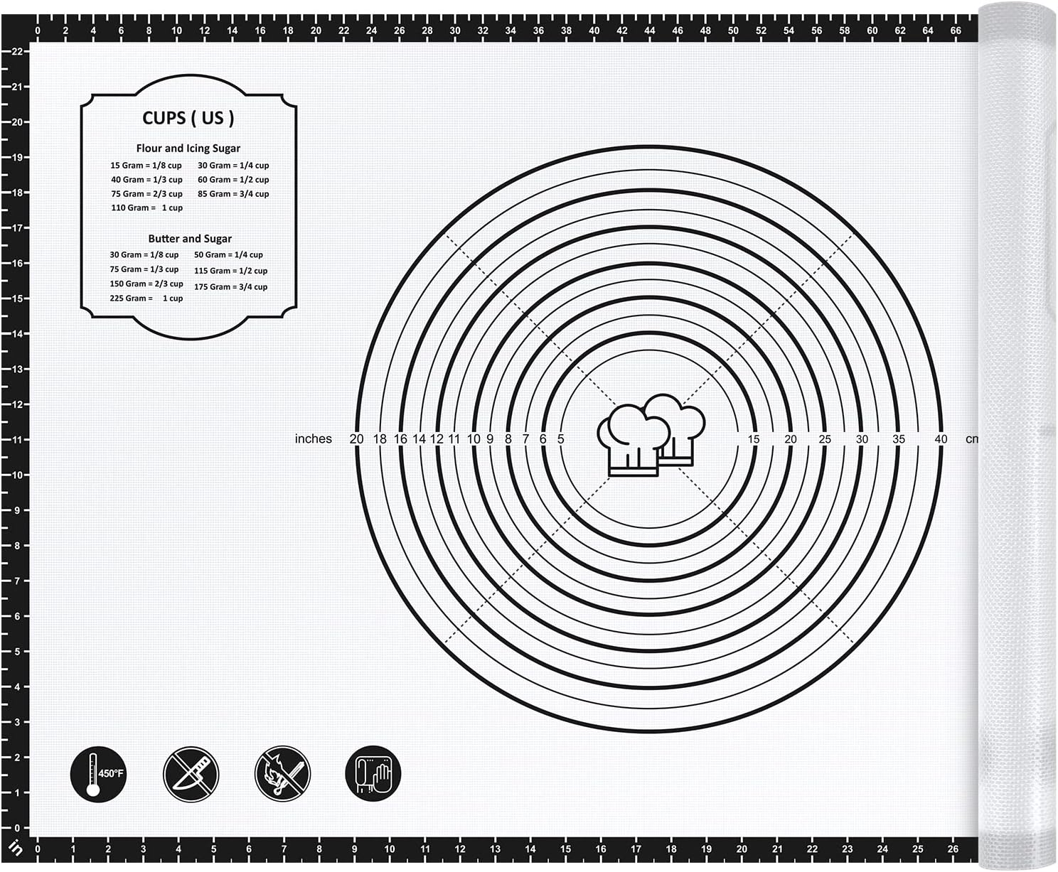 Silicone Baking Pastry Mat,36" x 24" Large Non Stick Sheet Mat with Measurement, Non-slip Food Grade Dough Rolling Mat for Making Cookies,Macarons,Bread