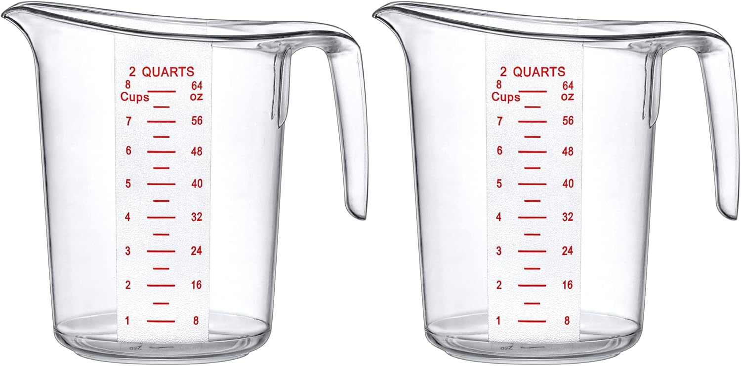 Amazing Abby - Melissa - 64-Ounce Plastic Measuring Pitcher (2-Pack), 8-Cup (2-Quart) Food-Grade Measuring Jug, Unbreakable, Stackable, Dishwasher-Safe, Great for Oil, Vinegar, Flour, and More