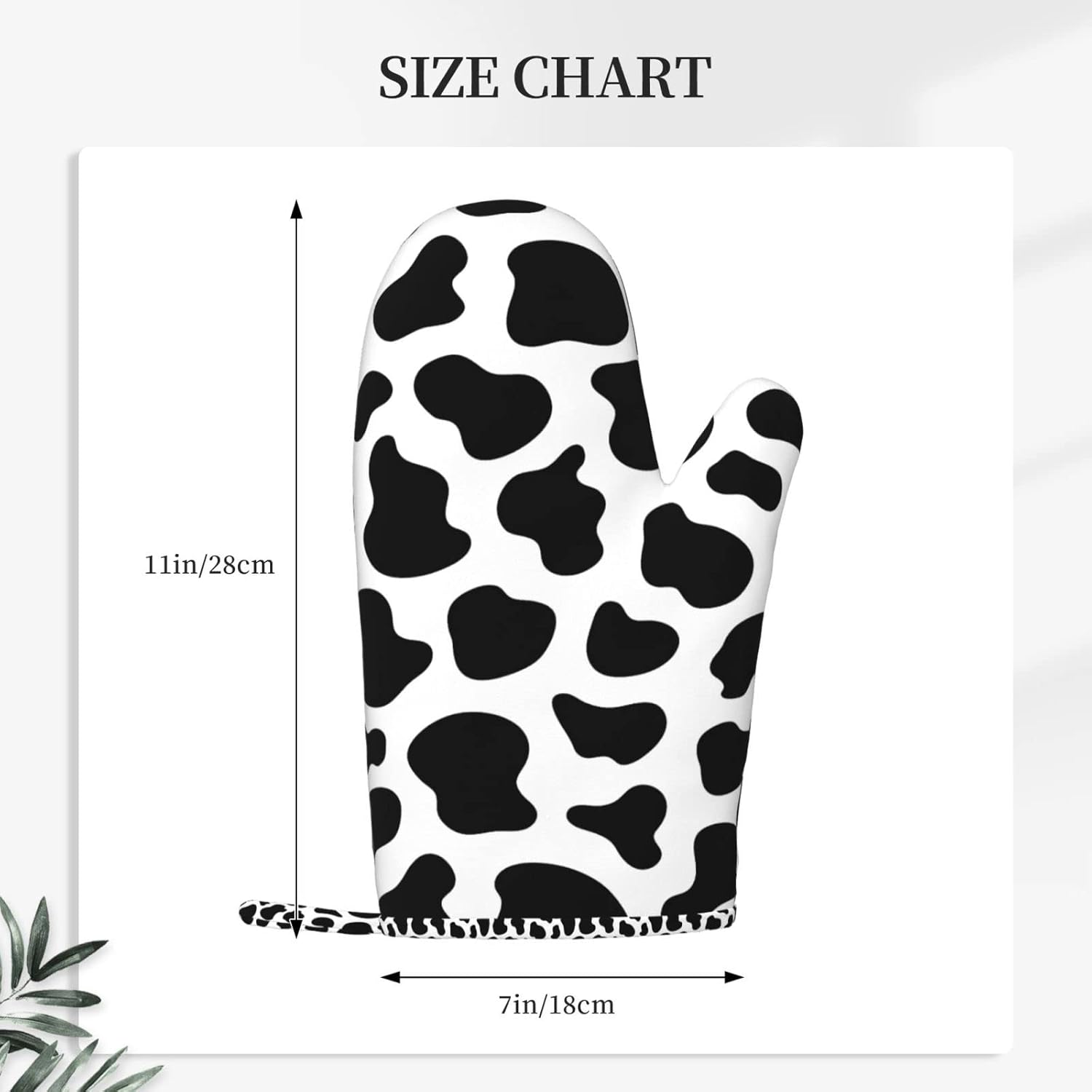 Cow Print Oven Mitts and Pot Holders Sets of 2,Resistant Recycled Infill Silicone Non-Slip BBQ Gloves for Kitchen,Cooking,Baking,Grilling