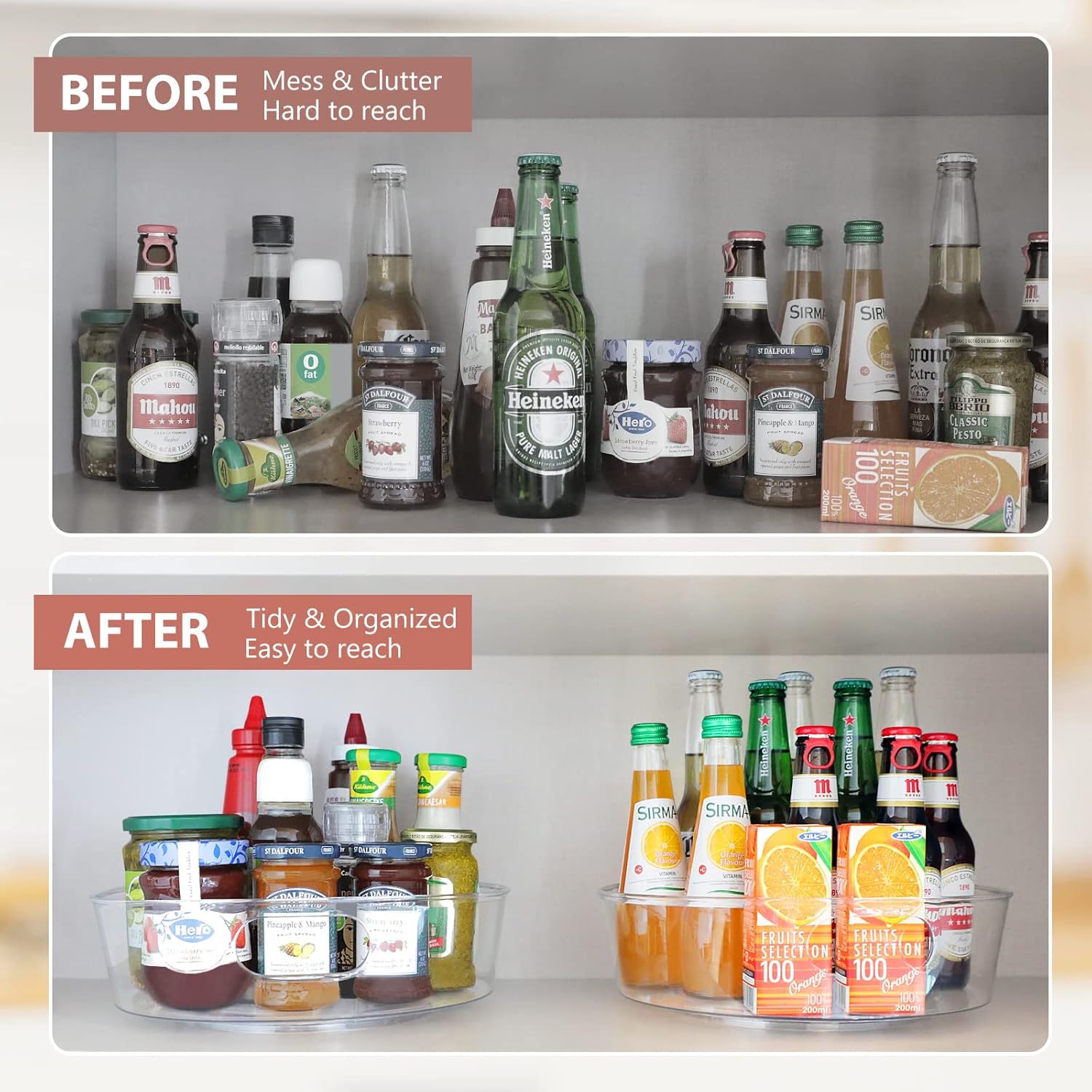 - Widely Used & Space Saver - Our revolving organizer is ideal for home organization, helping you to get rid of clutter and create an organized and tidy space in cabinets, kitchen, countertop, shelves, bathroom, pantry, office, under the sink and so on, providing you with an easy home life