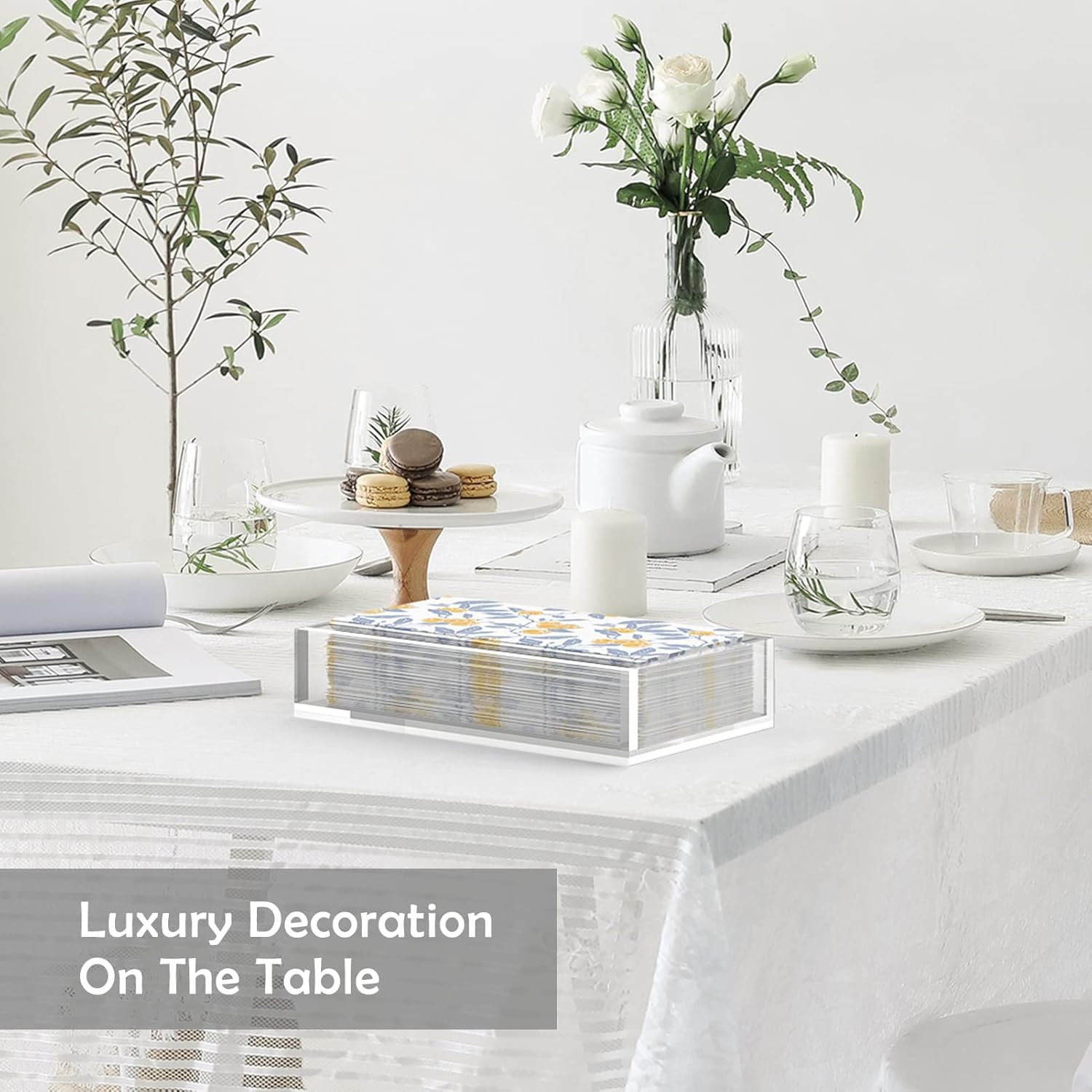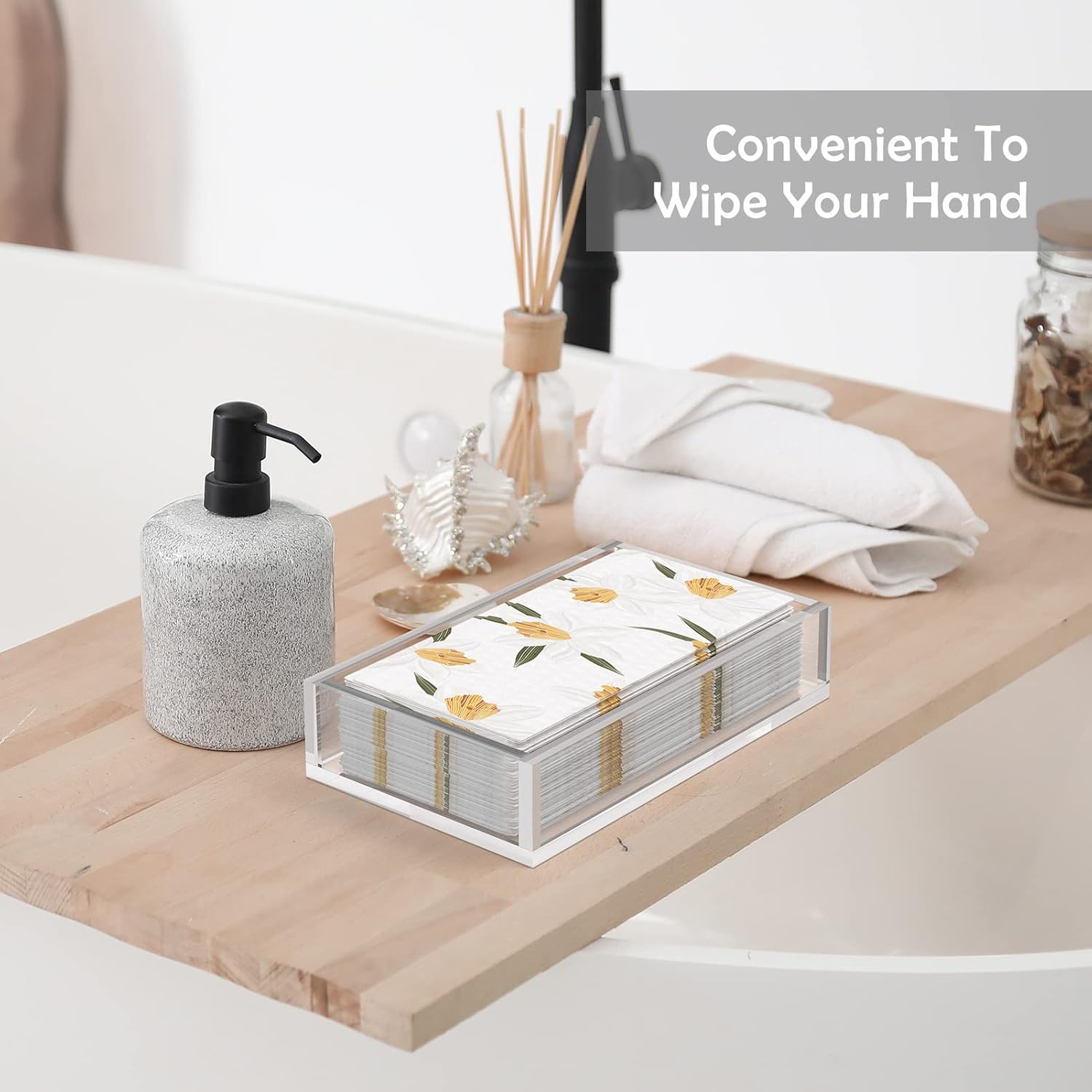- 【Minimalist Design】Clear like crystal acrylic are sleek and luxurious. It is not only practical to keep the disposable paper towels dry and tidy, but also can decorate your room. it's an artwork for guest bathroom, kitchen table, powder room decor.