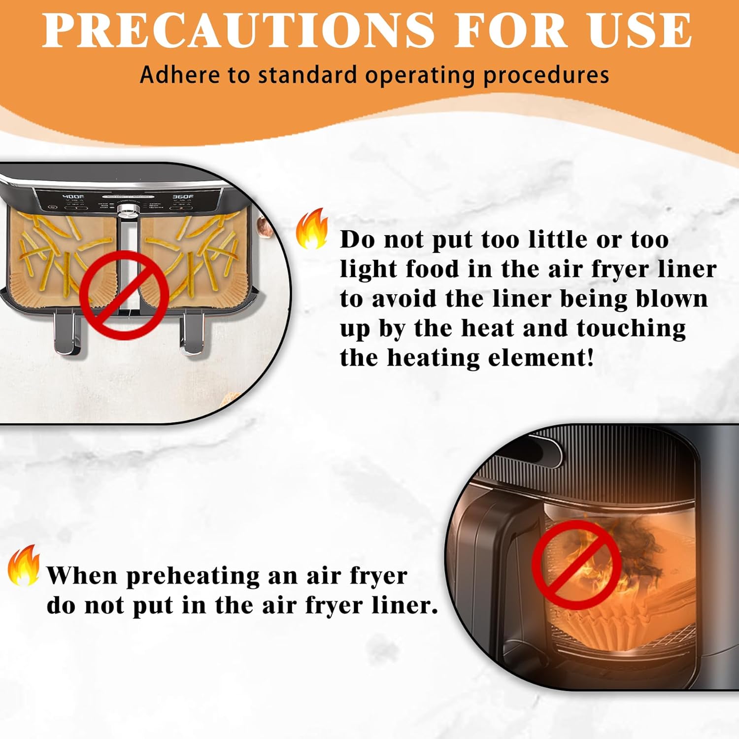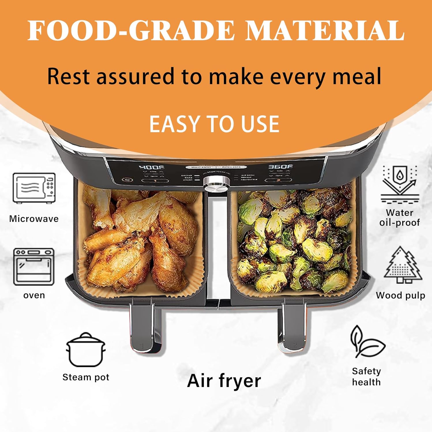 - đăPerfect sizeăThe size of Air Fryer Liners are 5.5" x 8.6"x1.77".Perfect for your Ninja Air Fryer.Designed by air fryer liners, it can be used perfectly for Ninja Foodi Dual Air Fryer DZ201 8Qt, DZ401 10Qt, Instant pot 8-quart,9 Quart, PowerXL 10Qt, Chefman 9Qt.