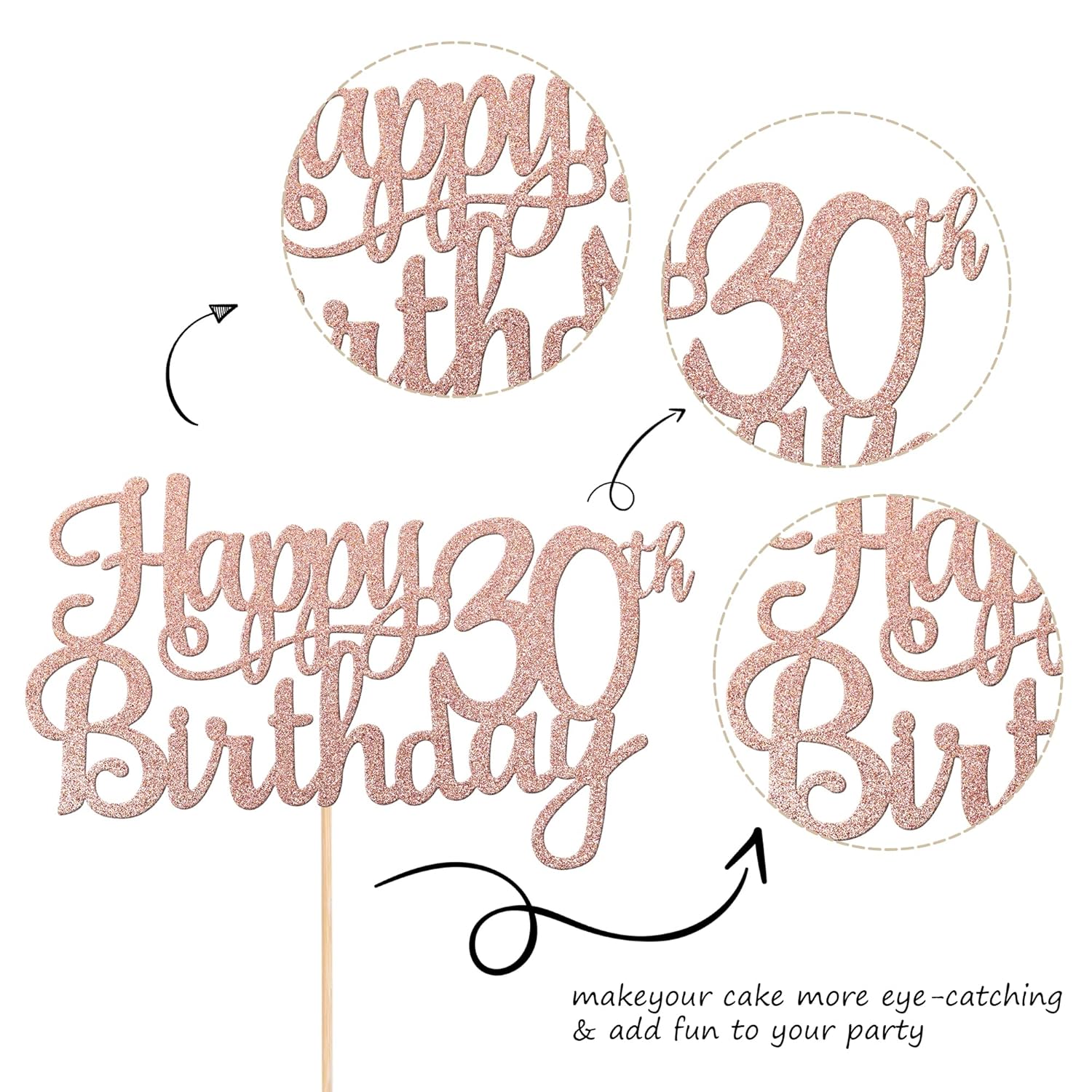 - Wide Usages ! The cake topper is perfect for happy 30th birthday theme party, cheers to 30 years birthday theme party cake decorations, they can make your cake more attractive and bring the fun to your party.You can also apply them for ice cream, fruits, cookies and other desserts.